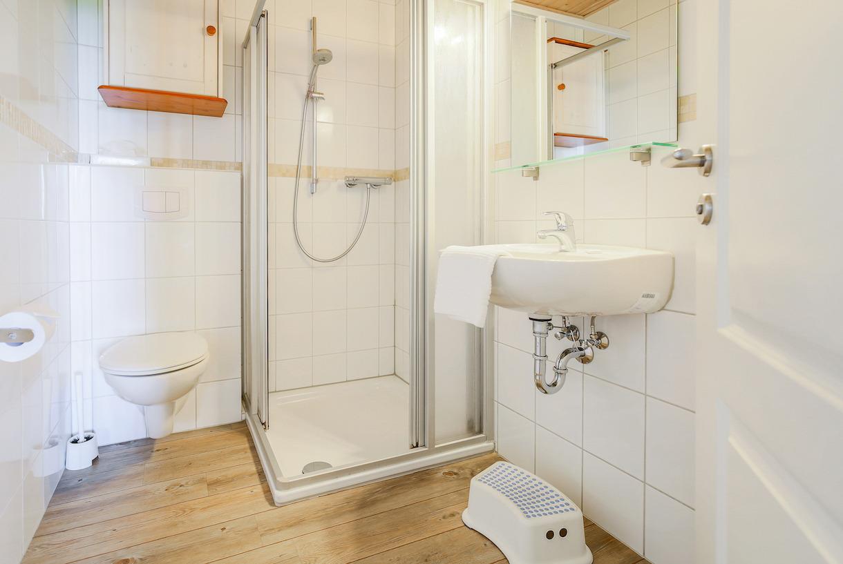 Ferienhaus (58qm): Das Haus hat einen separaten Eingang, zwei separate Schlafzimmer, Duschbad mit WC, einen Wohnraum mit voll ausgestatteter Küche, Esstisch, Sofagarnitur, TV, DVD-Player usw. und eine Südterrasse mit direktem Zugang zum Spielplatz und Blick auf die Ponyweide und die Ostsee. Das modern renovierte Haus ist vom DTV mit vier Sternen ausgezeichnet.