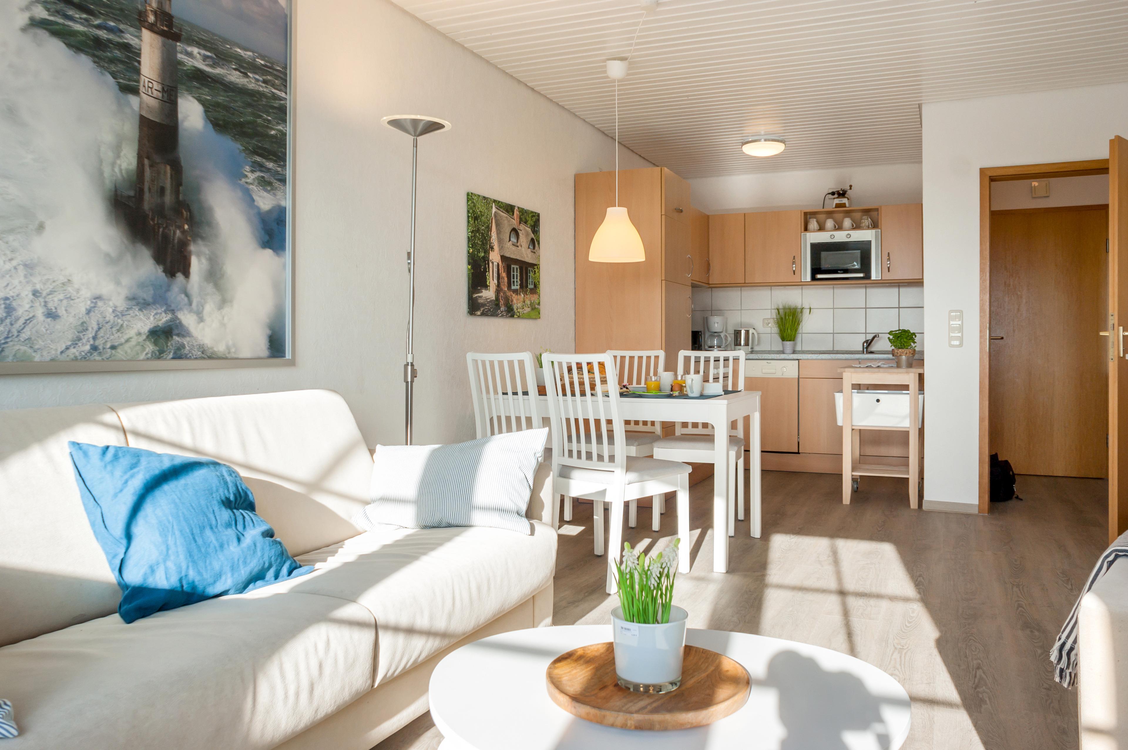 Die Wohnung "Sundblick" bietet ein Wohlfühl-Urlaubsquartier im 1. Geschoss auf unserem Knusthof in Albertsdorf. Das Appartement ist mit einer Küchenzeile im Wohnraum, einem seperaten Bad und einem wunderbaren Ausblick Richtung Süden auf die Fehmarn-Sundbrücke ausgestattet. So beginnen Sie Ihren Urlaubstag mit der Sonne im Gesicht.