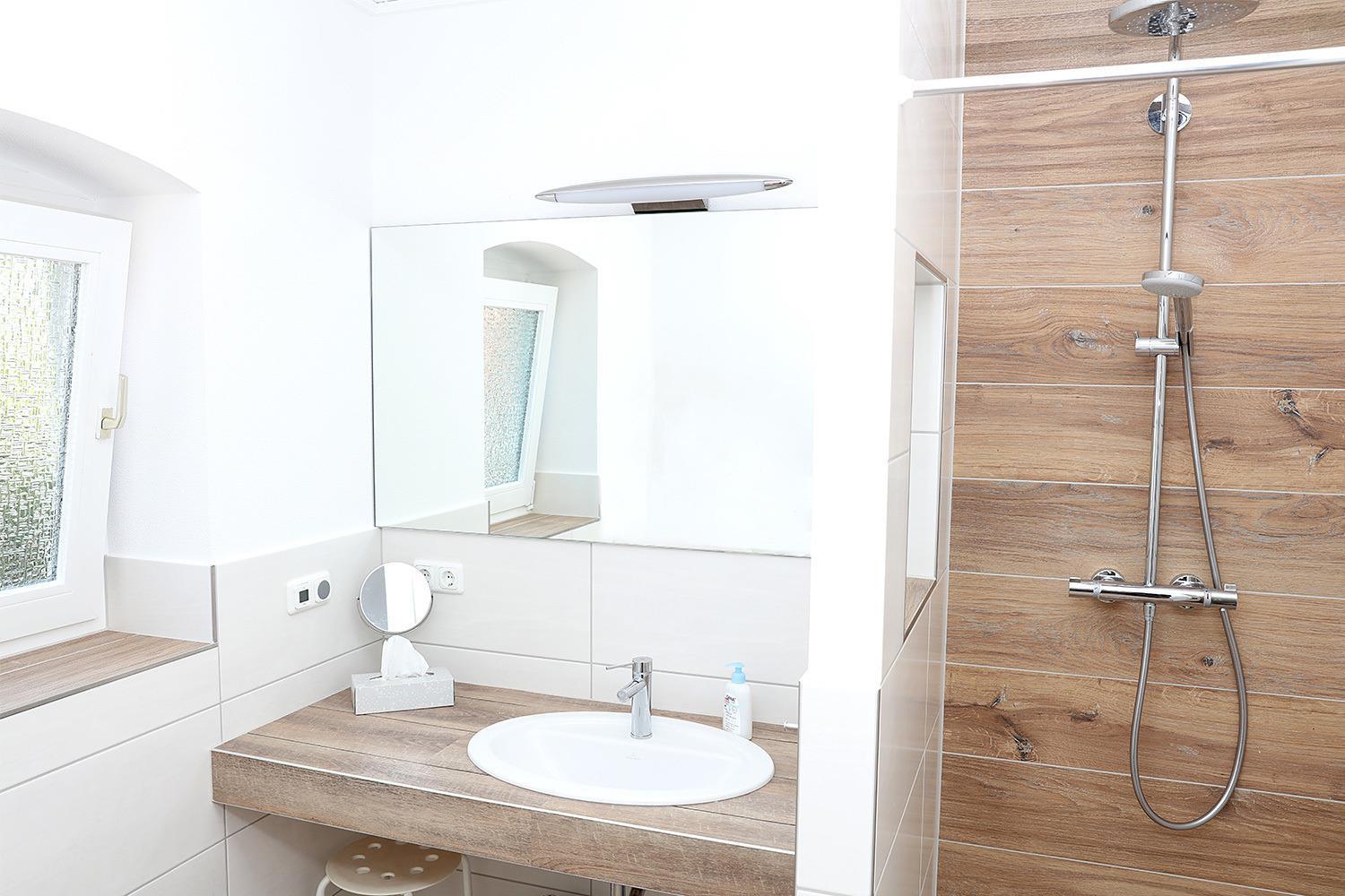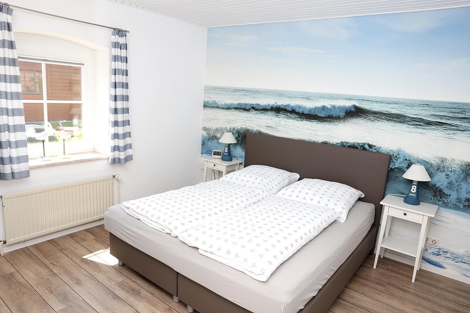 Die Ferienwohnung "Utspann" auf unserem Hof lädt, wie ihr plattdeutscher Name verrät, zum Entspannen ein. Sie ist ebenerdig, 72qm groß und bietet damit ordentlich Platz für bis zu 4 Personen plus ein Kleinkind (Babybett). Vom Flur blickt Ihr durch die Bullaugen-Tür ins Wohn- und Esszimmer. Hier könnt Ihr es Euch auf dem großen Sofa oder in den Sesseln gemütlich machen. Eure zwei Schlafzimmer sind mit einem großen Boxspringbett für Zwei und einem Familienbett für Drei ausgestattet. Optional stellen wir noch ein Babybett. Eine moderne Küche und ein schickes Bad gehören natürlich auch dazu, außerdem habt Ihr eine große Südterrasse. Auch auf dem gesamten Hofgelände findet Ihr genügend Lieblingsplätze für Groß und Klein. Bei kühlerem Wetter könnt Ihr Euch in der Infrarotkabine ("Wohlfühlsauna") in unserer Scheune aufwärmen. Auf die Kleinen warten unsere Dinocars und andere Fahrzeuge, ein Spielplatz und Trampolin, eine Spielhalle, Tischkicker, Tischtennis, ein Spielzimmer und ein riesiger Garten zum Austoben. Außerdem freuen sich unsere Ziegen und Kaninchen auf einen Snack oder eine Streicheleinheit. Also: Auf gehts, einfach mal stranden!