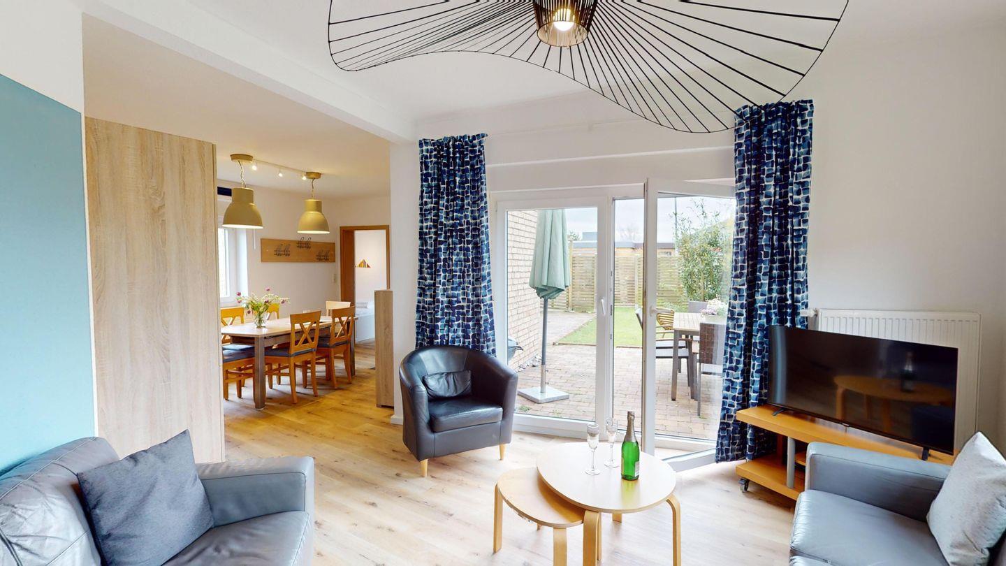 Die Einrichtung ist hell, freundlich und hochwertig, sodass Sie sich vom ersten Moment an wie zu Hause fühlen. In der großzügigen Wohnküche lässt sich gemeinsam kochen, essen und den Tag ausklingen – perfekt für lange Abende in guter Gesellschaft. Drei gemütliche Schlafzimmer sorgen für erholsamen Schlaf: zwei mit bequemen Doppelbetten und eines mit zwei Einzelbetten. Ein modernes Duschbad ergänzt das durchdachte Raumangebot.