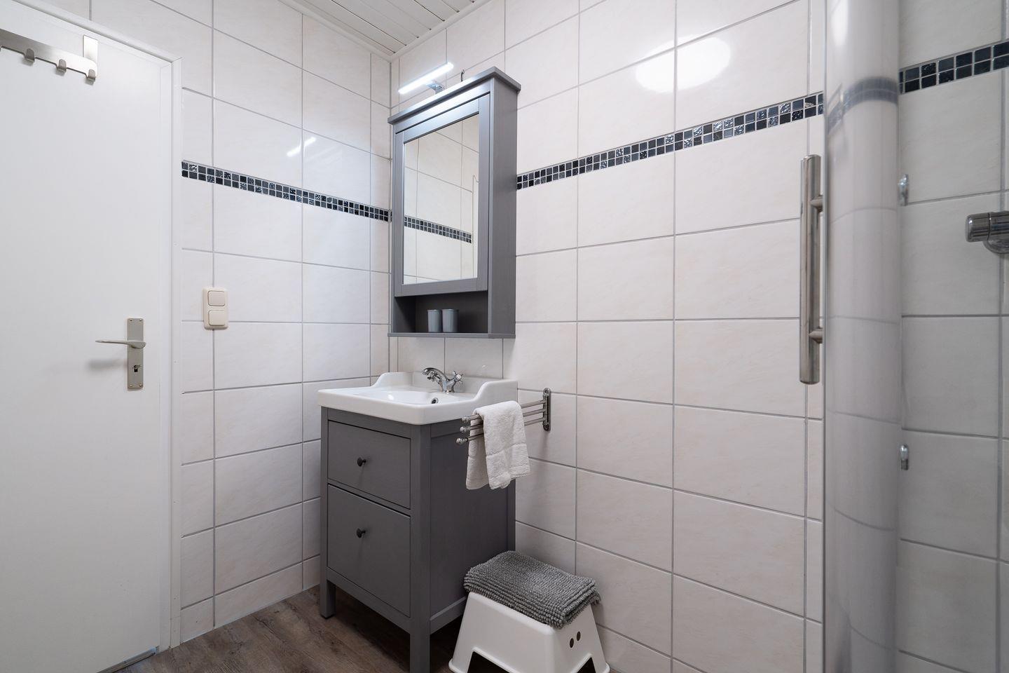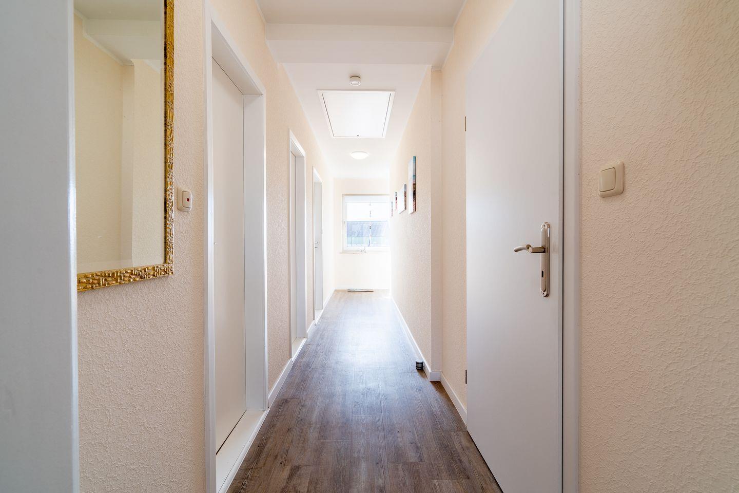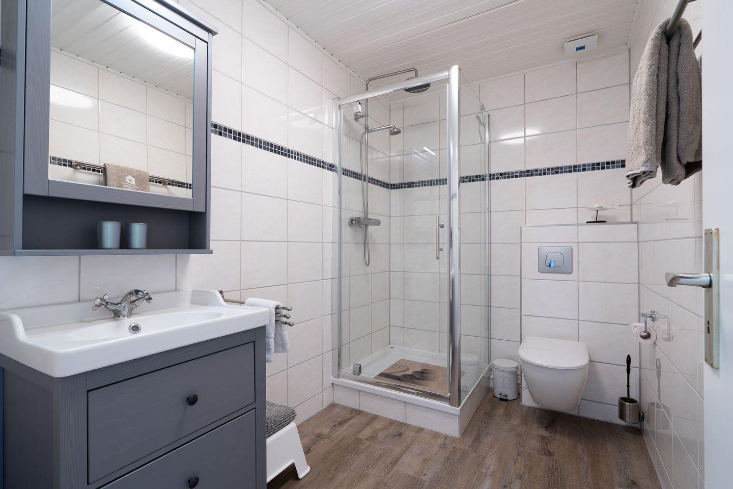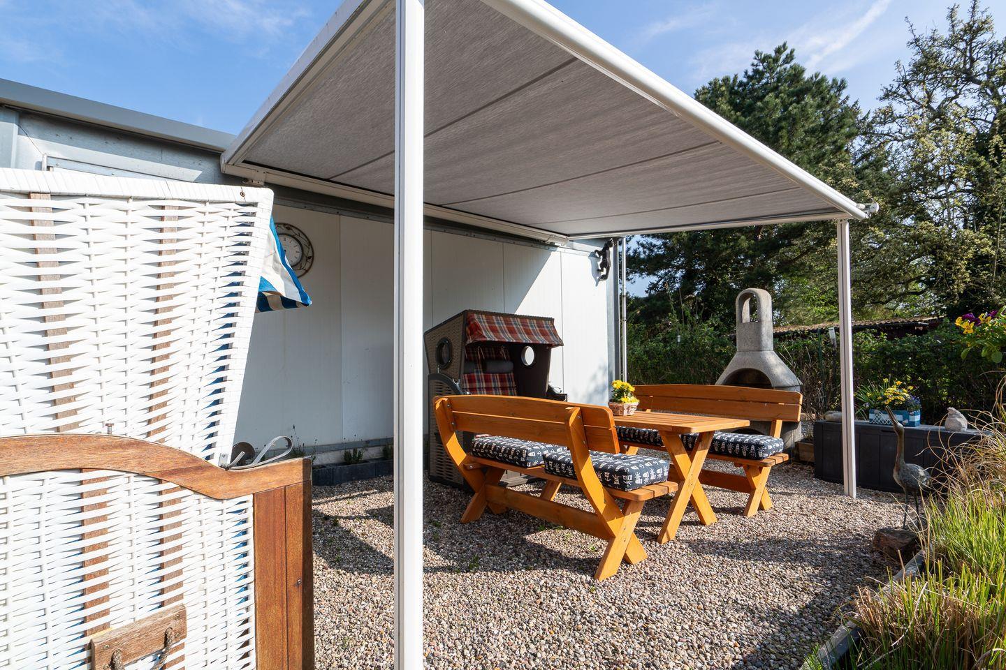 Die 60 m² große Ferienwohnung im 1. Obergeschoss bietet Platz für 2 Gäste und ist ideal für Radfahrer. Sie verfügt über ein Schlafzimmer, ein Badezimmer und eine separate, gut ausgestattete Küche mit Herd, Backofen, Mikrowelle, Kühlschrank, Kaffeemaschine und Gefriermöglichkeit. Eine möblierte Terrasse mit Grillplatz, Markise, Strandkorb und Sonnenliegen lädt zum Entspannen ein. Hunde sind herzlich willkommen.