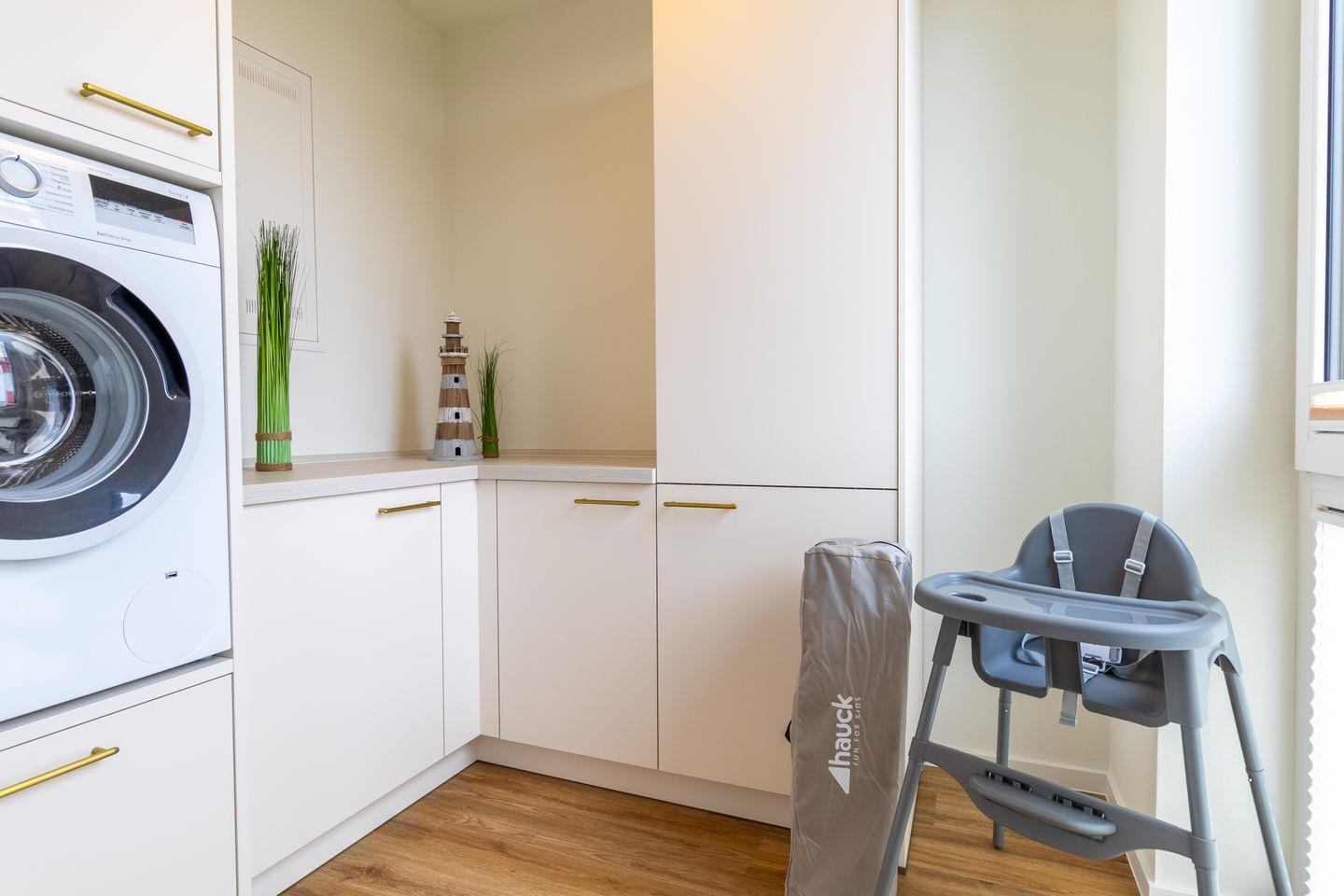 Auch für kleine Gäste ist gesorgt: Ein Hochstuhl und ein Reisebett stehen zur Verfügung. Die Wohnung ist barrierearm erreichbar und bietet durch die großzügige Raumaufteilung ausreichend Platz für Familienmomente mit Komfort.