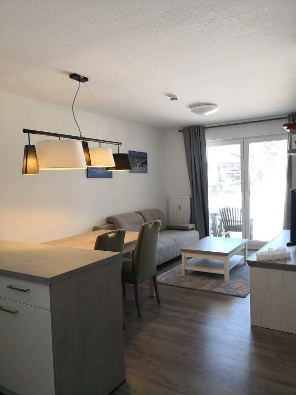 2-Zimmer-Ferienwohnung für 2-4 Personen, 47 m², Schlafzimmer mit Doppelbett, Wohn-Schlafraum mit Doppelbettcouch, separater Essplatz, voll ausgestatteter Küchenbereich mit Geschirrspüler, Bad mit Dusche/WC und Whirlpool, Balkon mit Sitzgarnitur, SAT-TV, W-LAN. Sky Bundesliga HD, Sport1 HD, Cinema HD, Sky Family HD.