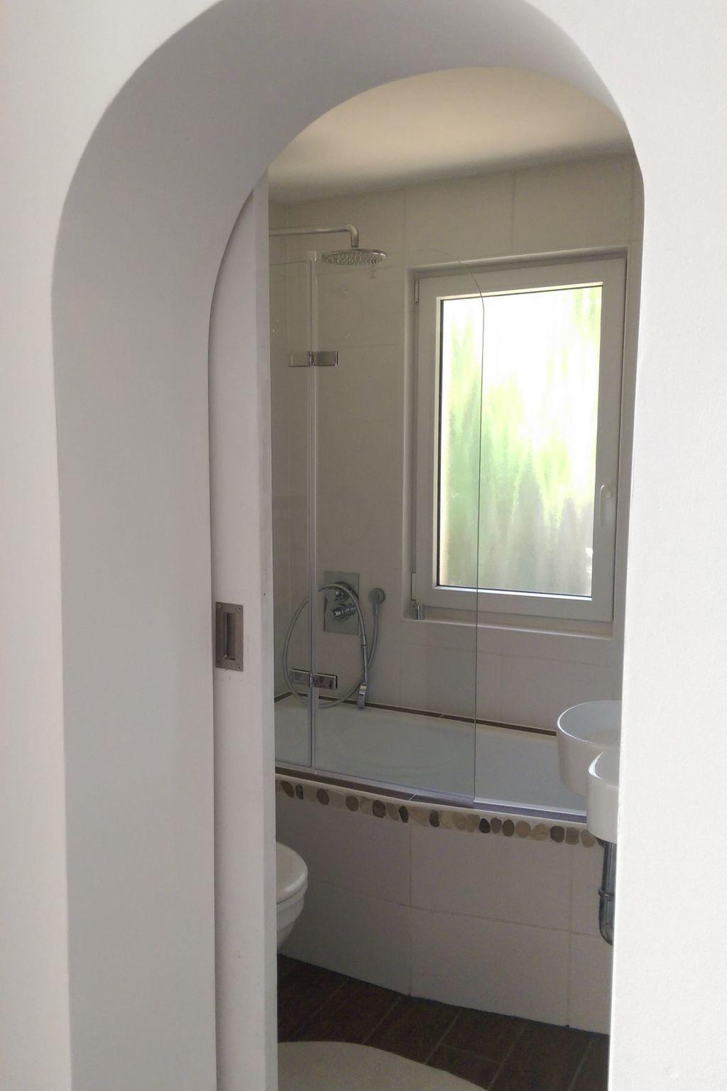 The kitchen is equipped with induction hob, electric oven, dishwasher and fridge, the small bathroom is very well equipped with bathtub, toilet, washbasin, large mirror and underfloor heating.