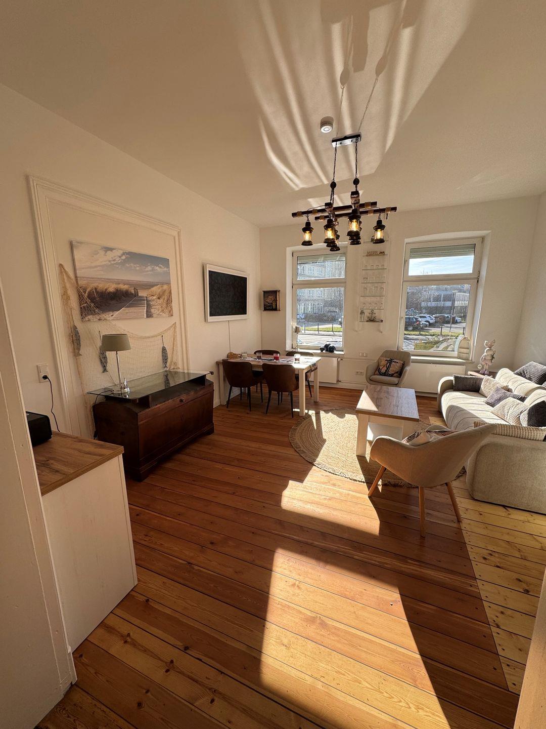 Die Ferienwohnung "Steuerbord" in Flensburg bietet auf 50 m² im Parterre Platz für bis zu 3 Personen. Die 2-Zimmer-Wohnung verfügt über ein Schlafzimmer, ein Wohnzimmer mit offener Küche, WLAN sowie ein Bad mit Dusche. Nur wenige Schritte von der Förde entfernt genießt Du eine tolle Stadtlage. Ein kostenloser Privatparkplatz vor der Unterkunft, kontaktloser Check-in/out und die Nähe zu Restaurant und Nahverkehr runden den Aufenthalt ab.