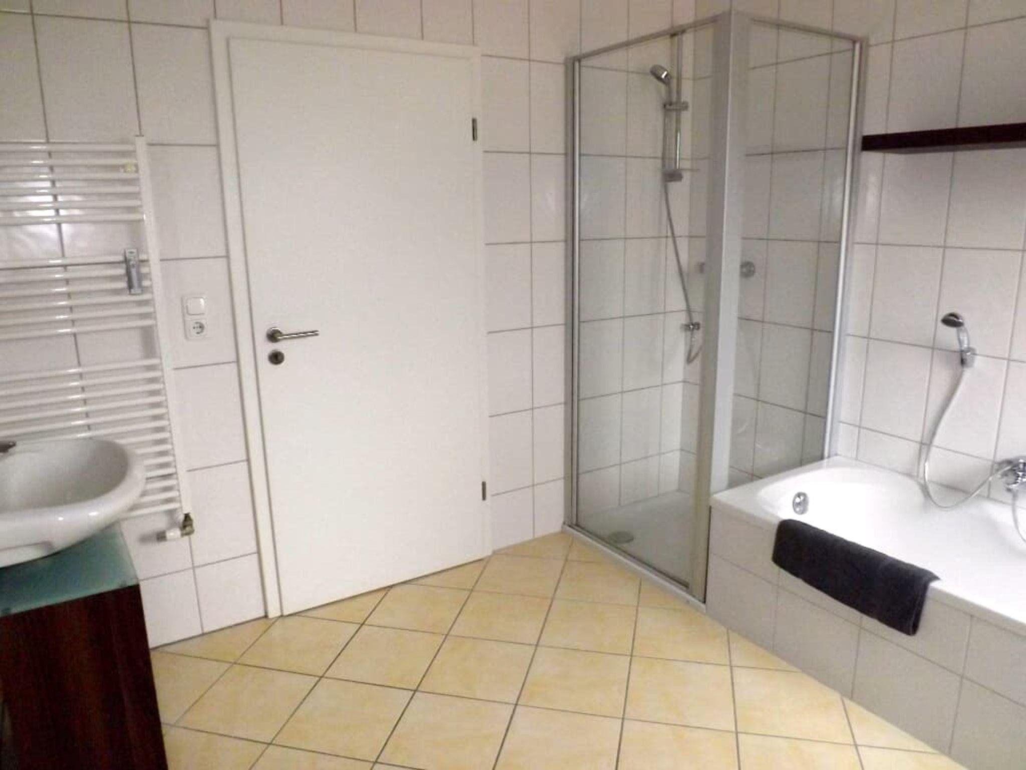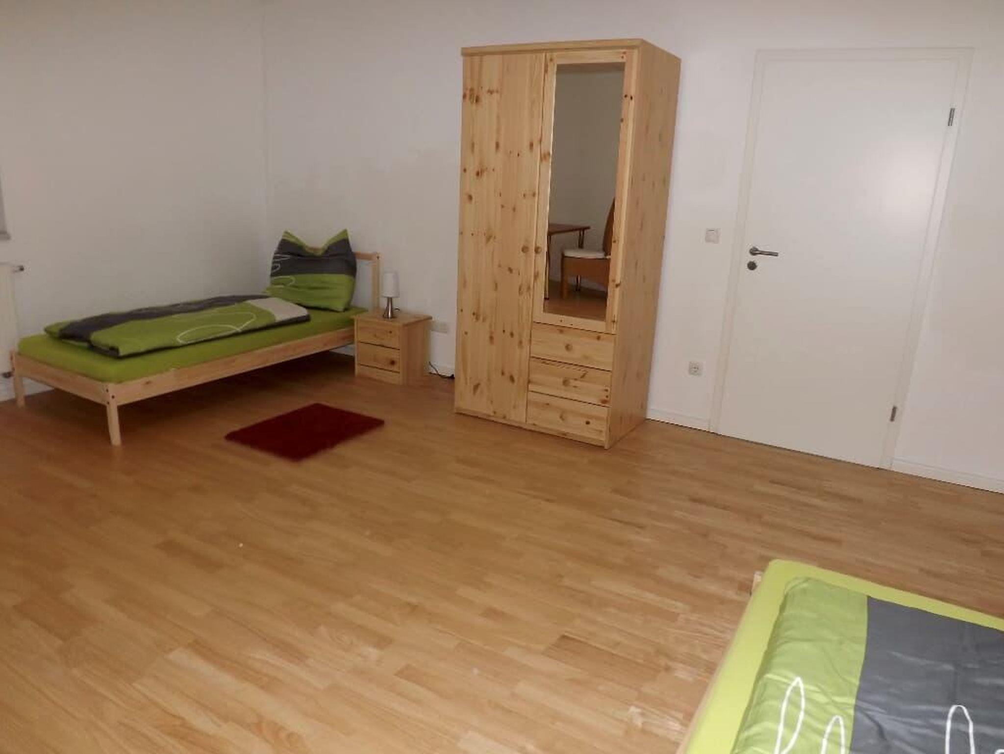 Unsere freundliche, komfortabel ausgestattete Ferienwohnung mit einem hellen großen Wohnraum mit Einbauküche, Essecke und Einzelbett, ein Schlafzimmer mit 2 Einzelbetten und ein Schlafzimmer mit 3 Einzelbetten sowie Badezimmer mit Dusche, Waschbecken und WC lädt zum Wohlfühlen ein. Bett- und Tischwäsche sowie Handtücher sind vorhanden.