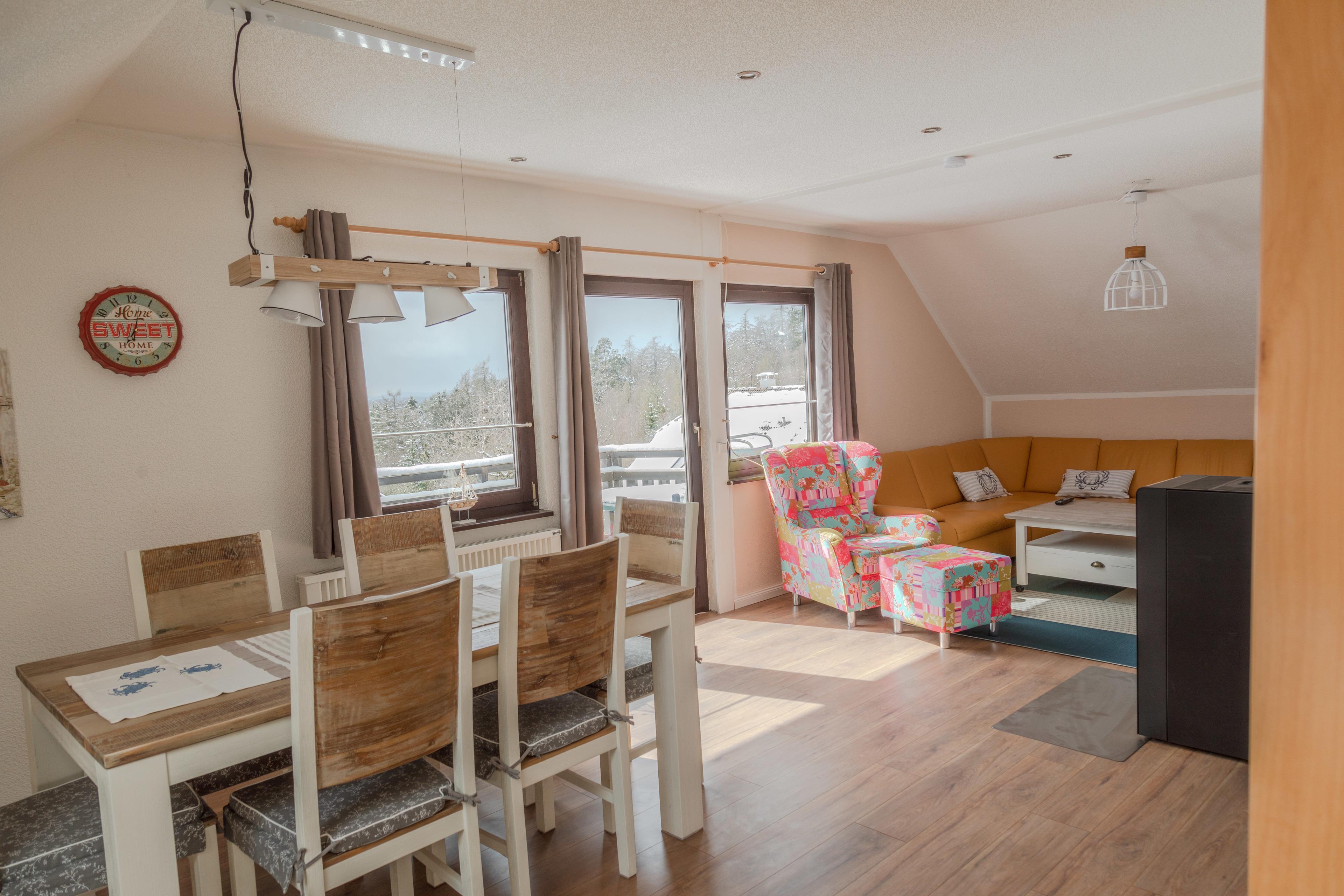 Die helle und großzügig geschnittene Ferienwohnung wurde von uns mit sehr viel Liebe zum Detail eingerichtet und bietet eine umfangreiche Ausstettung, mit offenem Wohnkonzept. Es handelt sich um die im OG gelegene, von insgesamt zwei Ferienwohnungen, eines freistehenden, im Fachwerkstil erbauten Ferienhauses mit eigenem Treppen-Eingang.