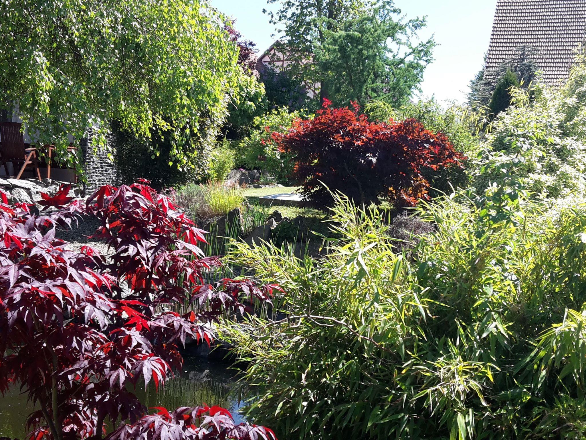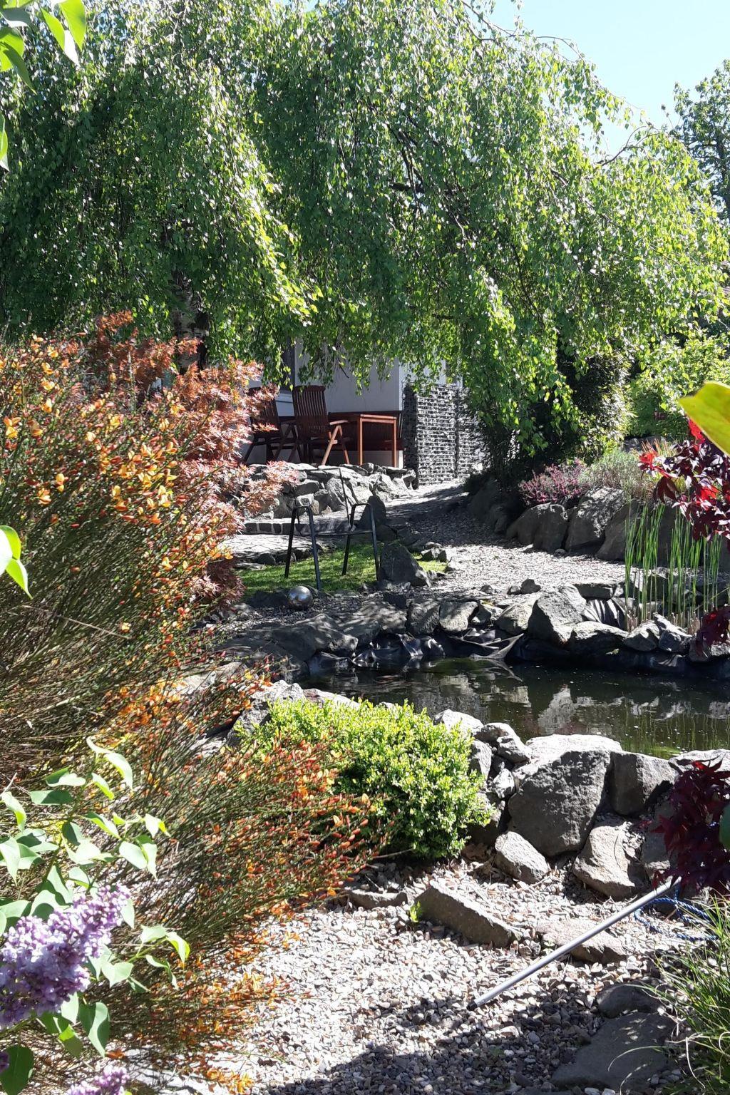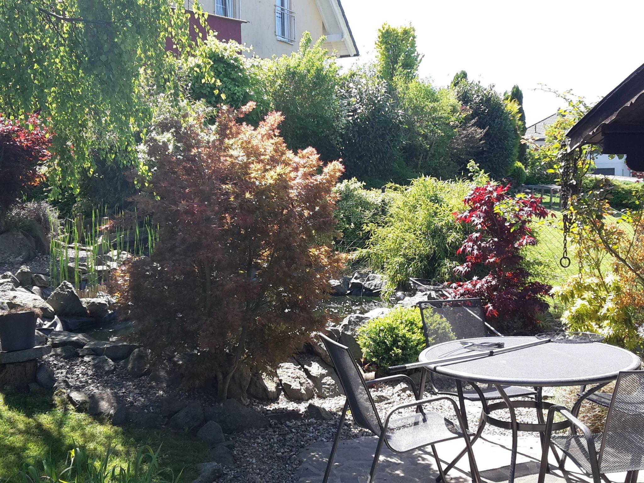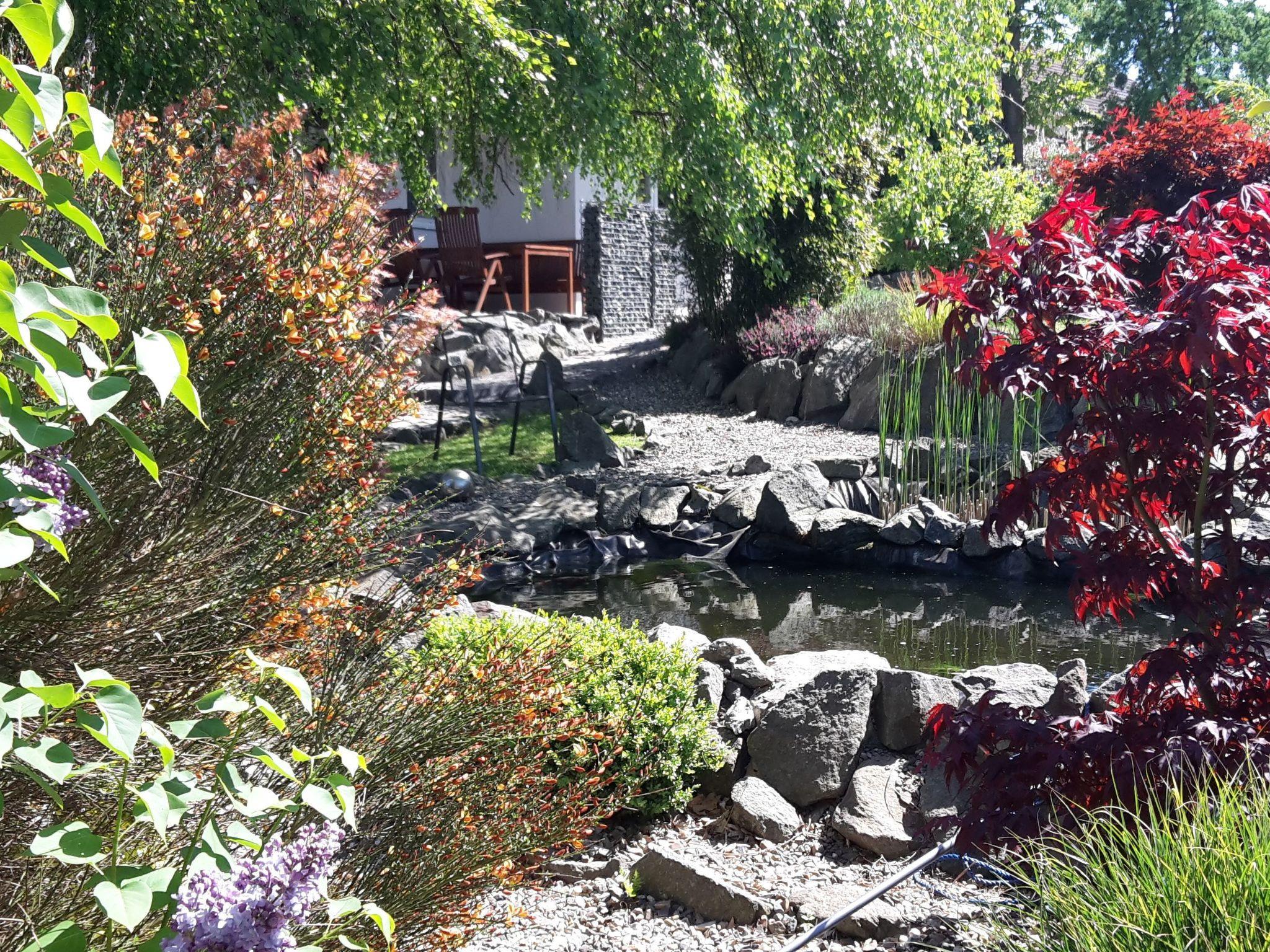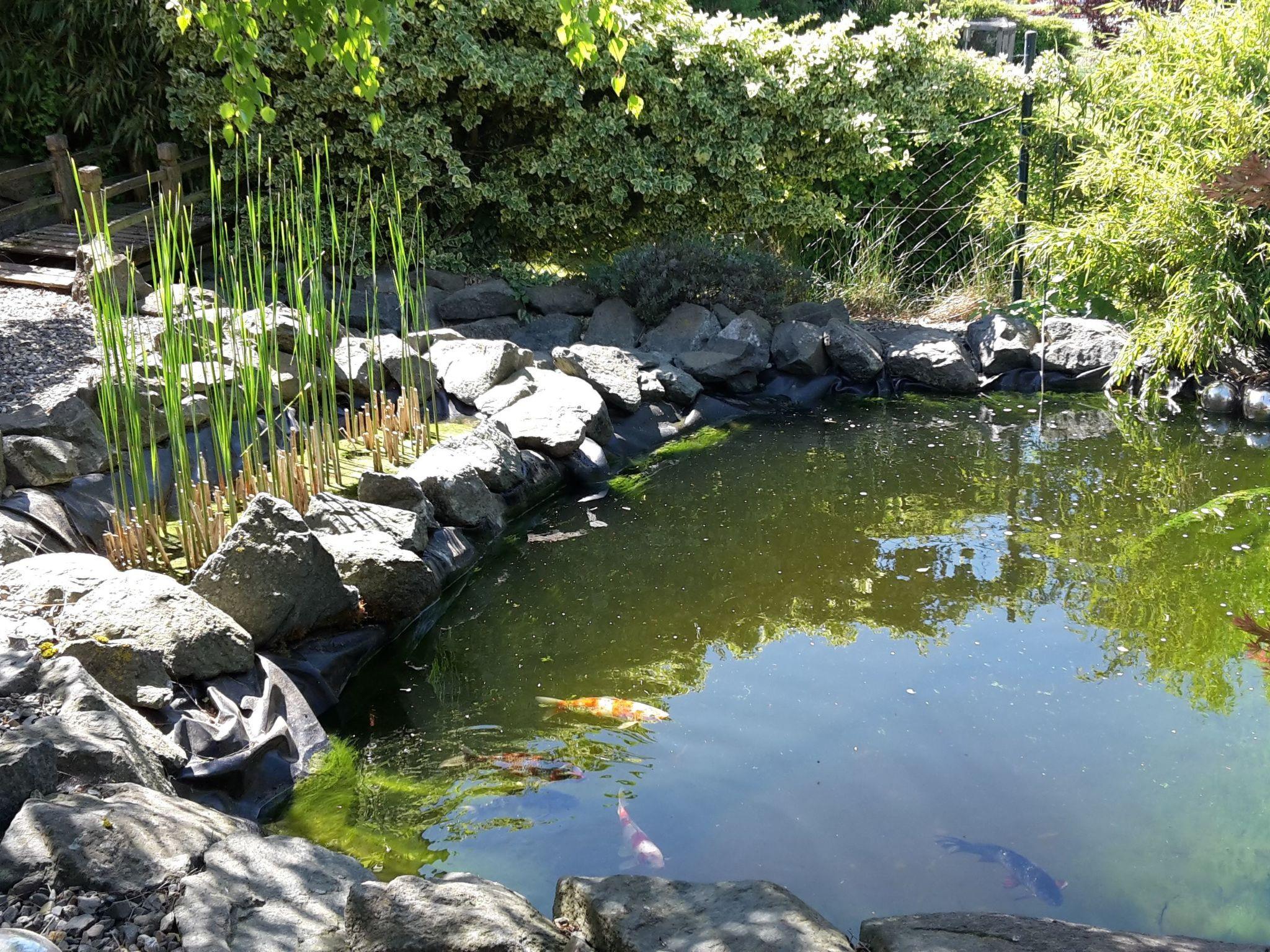 A roofed terrace and a garden with a garden shed, a pond with a stream, a swing and a bicycle storage room are available.