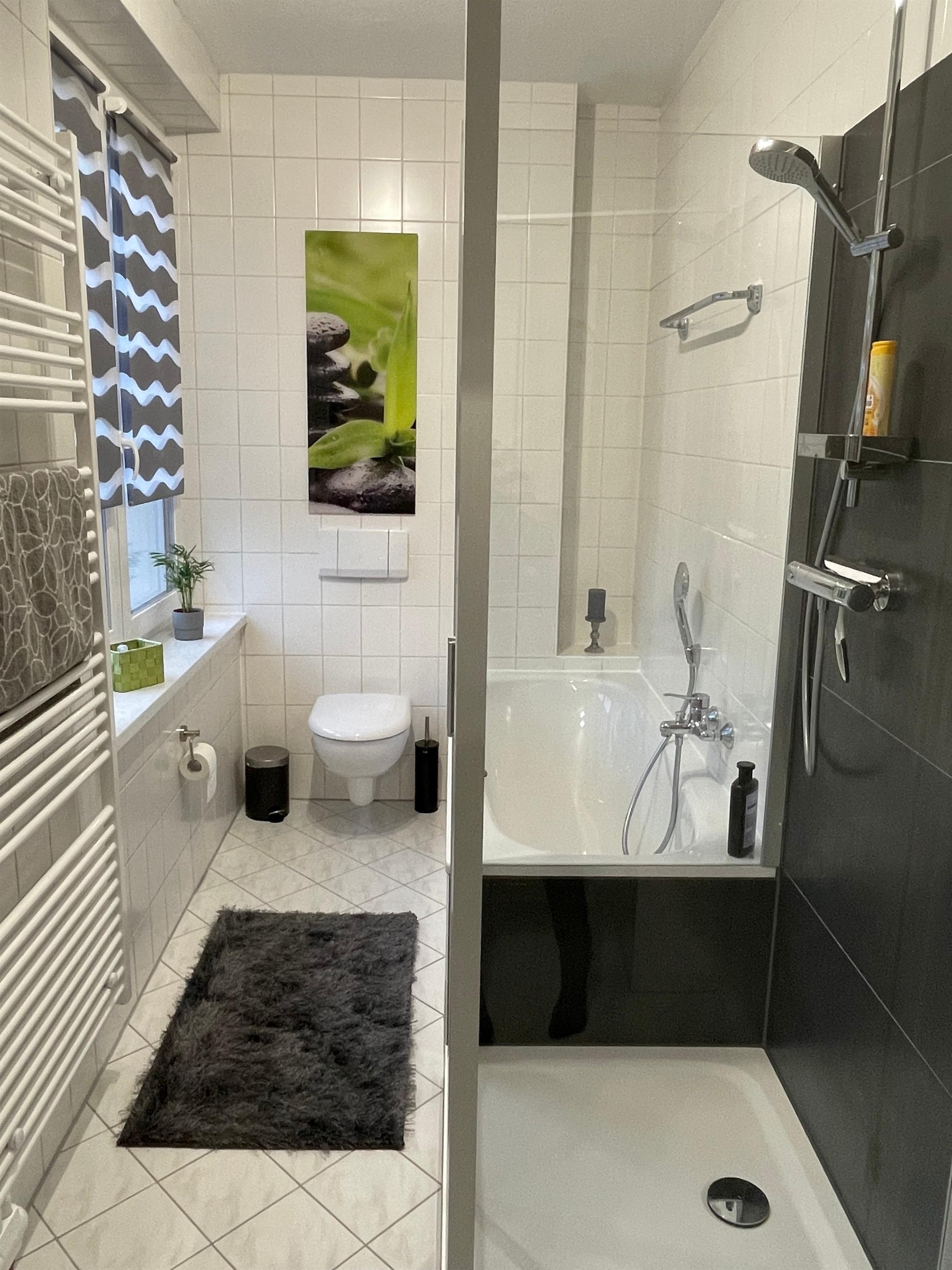 Die hochwertig renovierte und liebevoll eingerichtete Ferienwohnung - mit Privatparkplatz und kostenfreiem WLAN - befindet sich im 1. Obergeschoss und verfügt über einen großen Balkon mit Ausblick in den Garten.