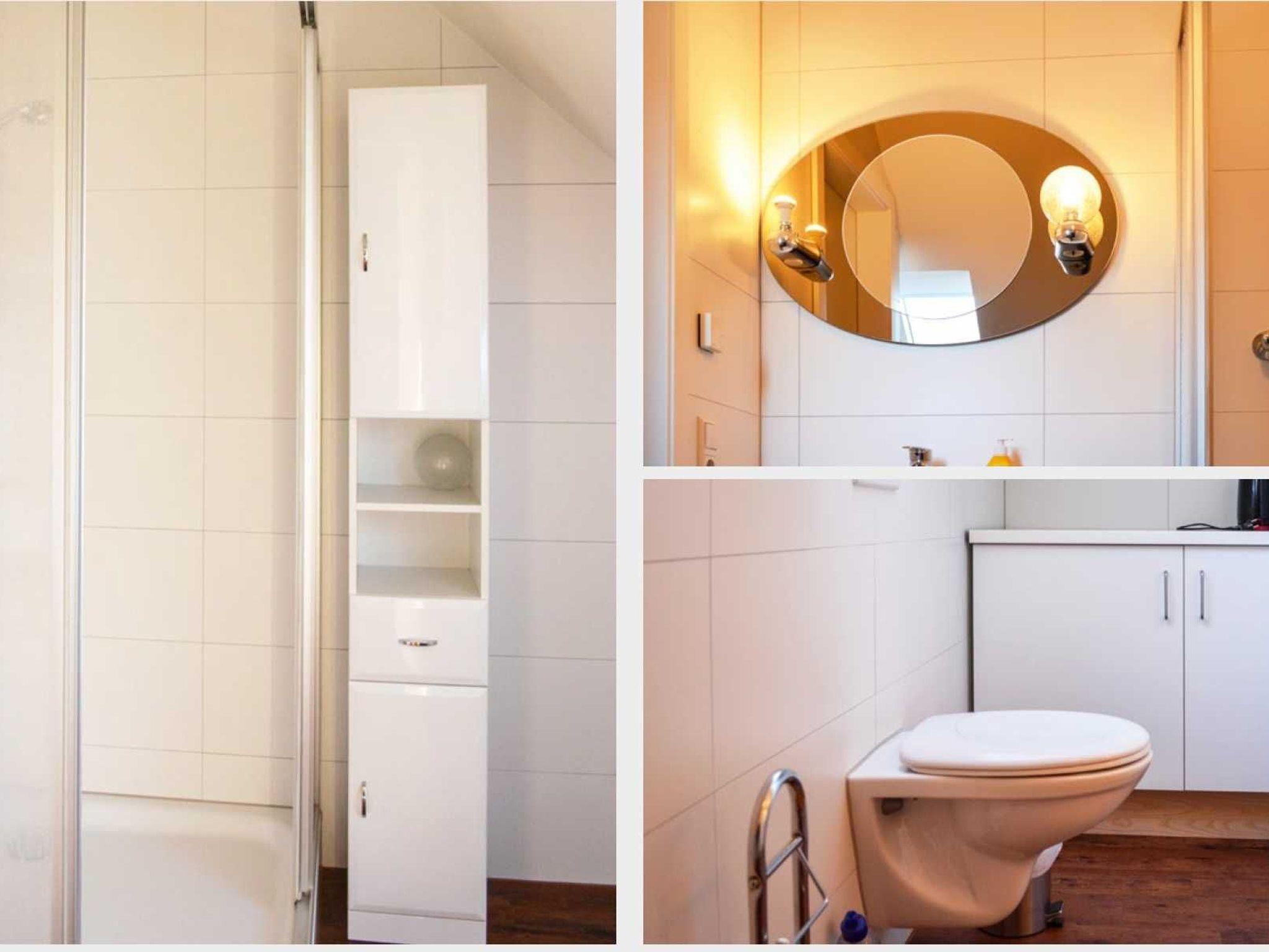 Dusche im Bad, Fliesenboden im Bad, Handtücher, Spiegel, Föhn, Wlan kostenfrei.