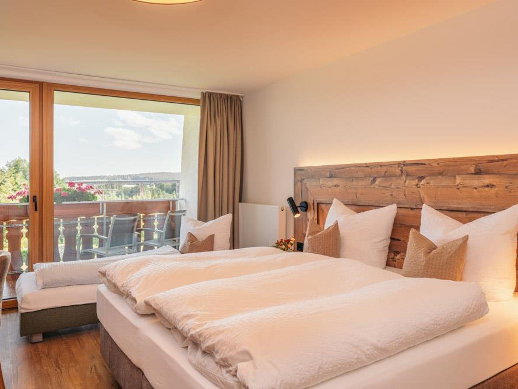 Unsere Familienzimmer im modernen Landhausstil bieten Ihnen einen herrlichen Blick ins Stockerbachtal auf unser wunderschönes Grüntal.