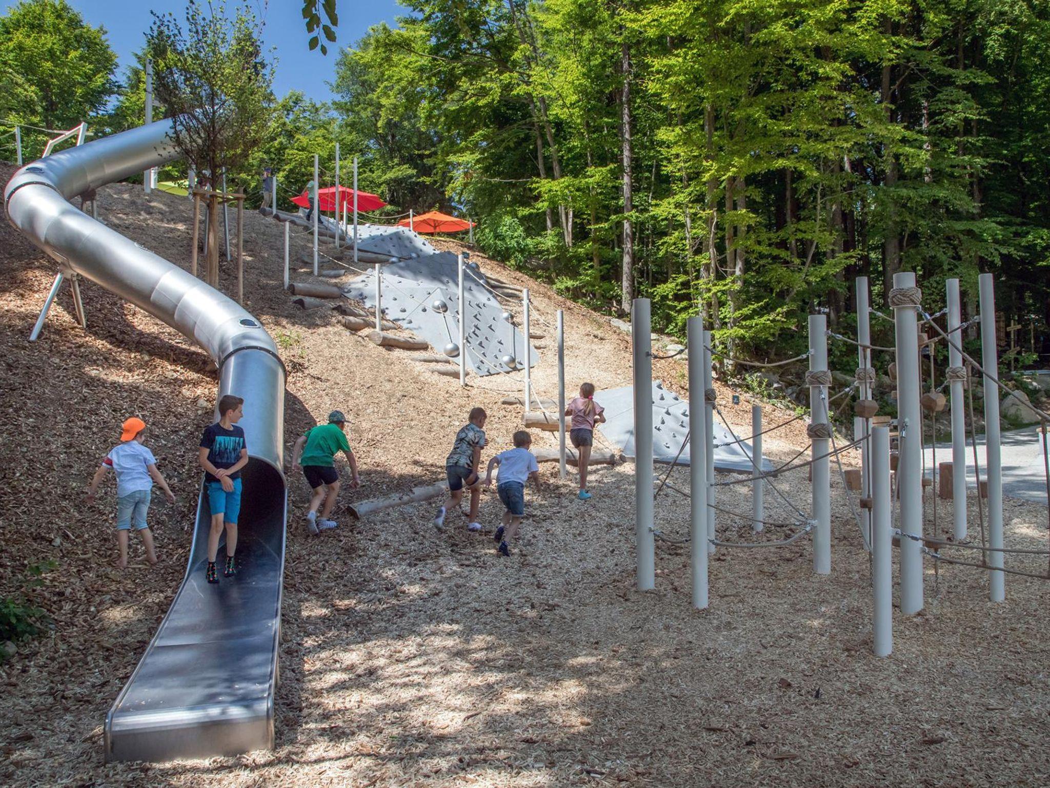Direkt neben der Ferienanlage befindet sich ein großer Kletterspielplatz mit einzigartiger Kletterwolke und ein Bewegungsparcours. Ideal für Familien mit Kindern.