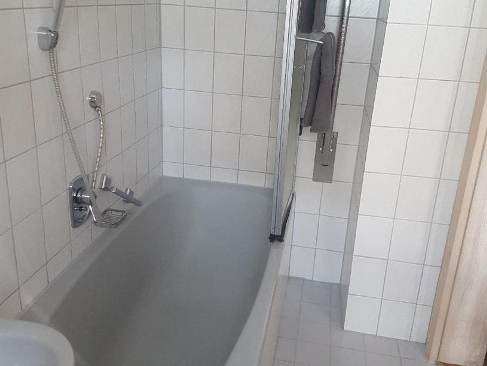 Im 1 Stock befindet sich das Bad und die beiden Schlafräume. Das Bad mit Badewanne/Dusche, Toilette u. Waschbecken ist ausgestattet mit Hand- u. Duschtüchern sowie einem Fön.