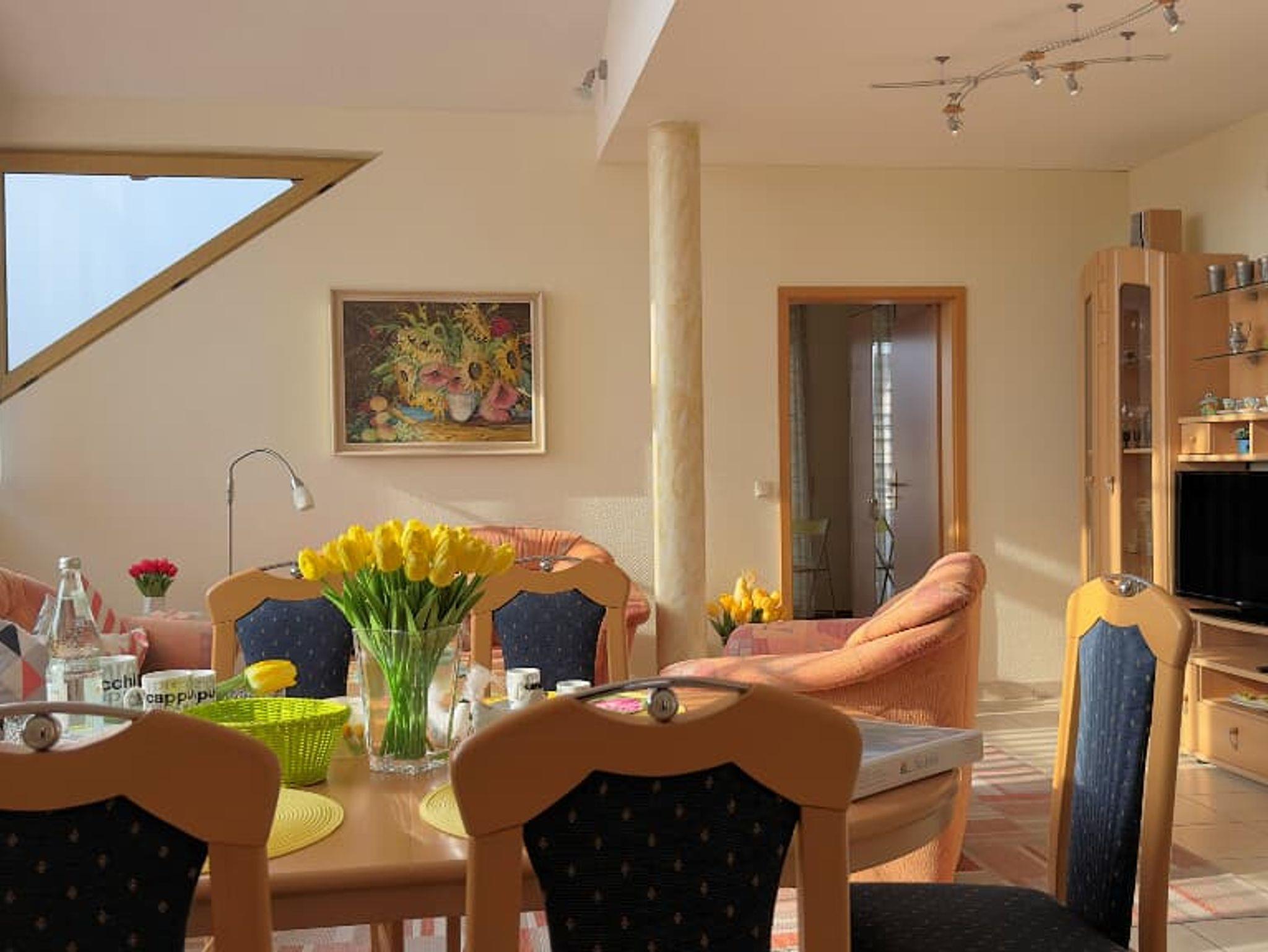 Die Ferienwohnung bietet Platz für 4 Personen. Komfortabel eingerichtete Ferienwohnung im Obergeschoß mit Balkon und Gartenbenutzung. Mindestbelegung 4 Übernachtungen!