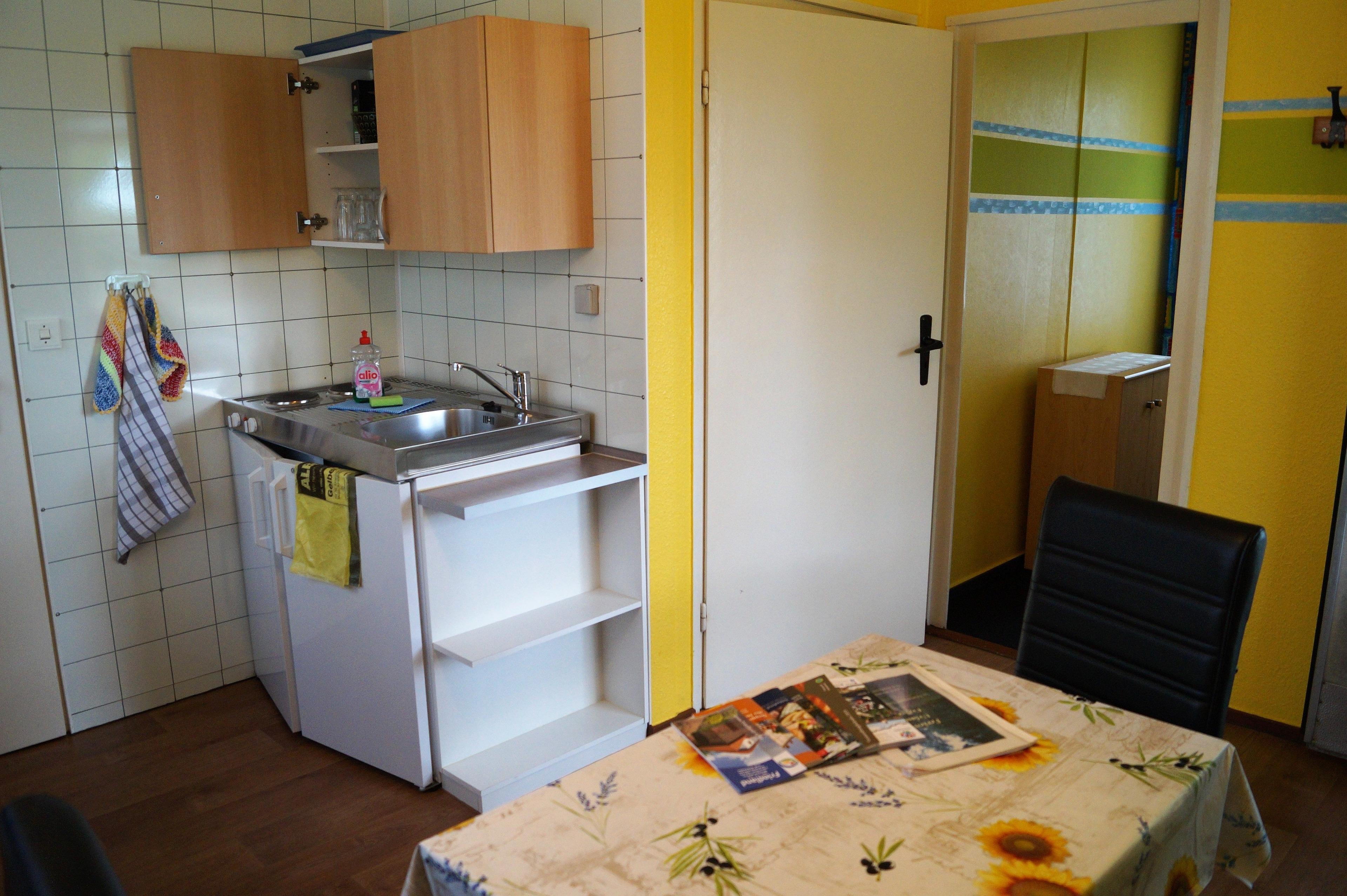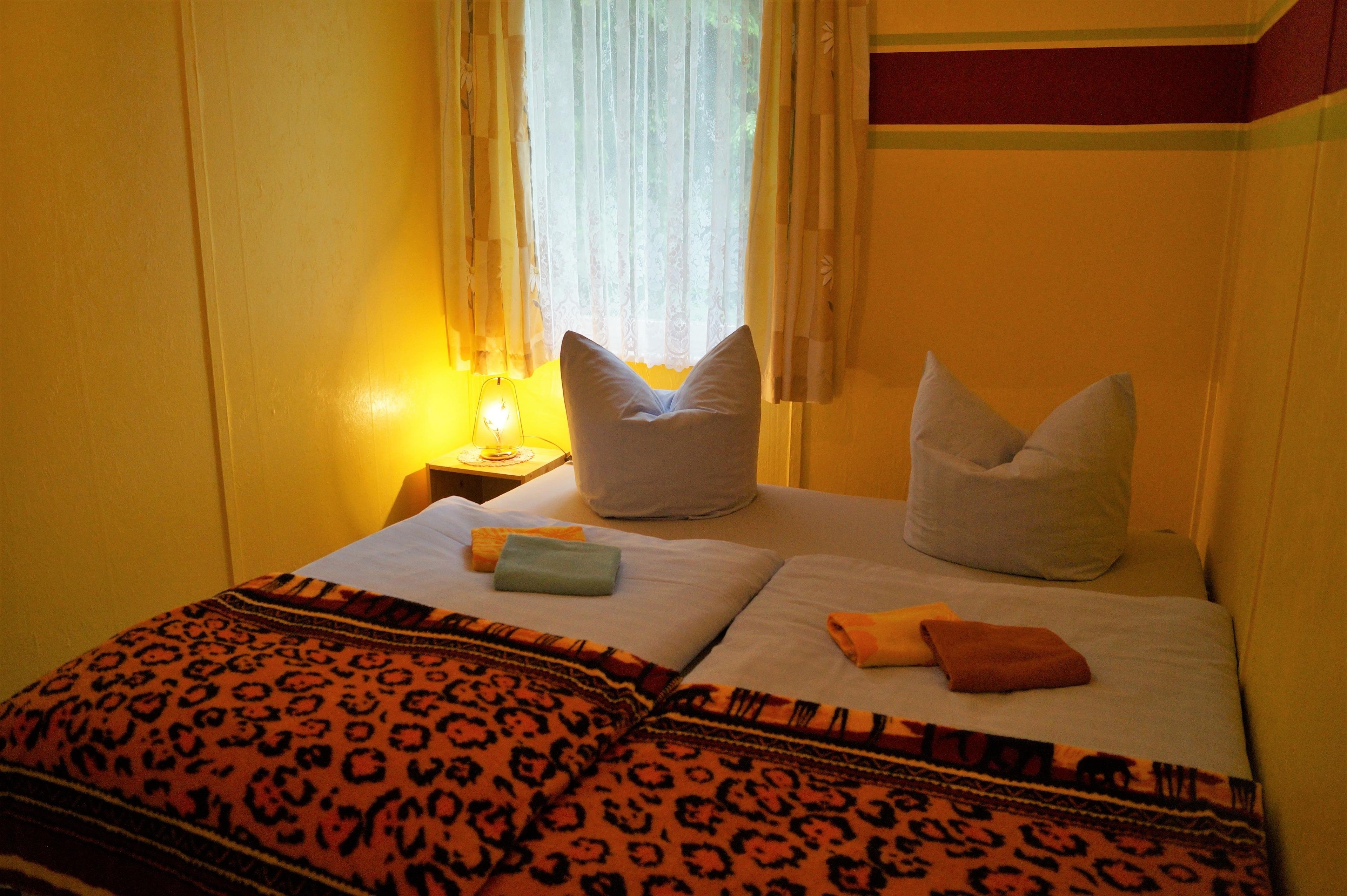 Doppelhaus Typ 8 ist eine Doppelhaushälfte für bis zu 4 Pers. (3 Erw. + 1 Kind). Die Nutzfläche beträgt ca. 34m² Nutzfläche incl. eine mit Gartenmöbeln ausgestattete Terrasse, eine komplett eingerichtete Wohnküche mit Elektrokochplatten, Kühlschrank, Spüle, Kaffeemaschine etc., einen Schlafraum mit Doppelbett, einen Schlafraum mit Etagenbett, sowie ein Bad mit Dusche & WC.