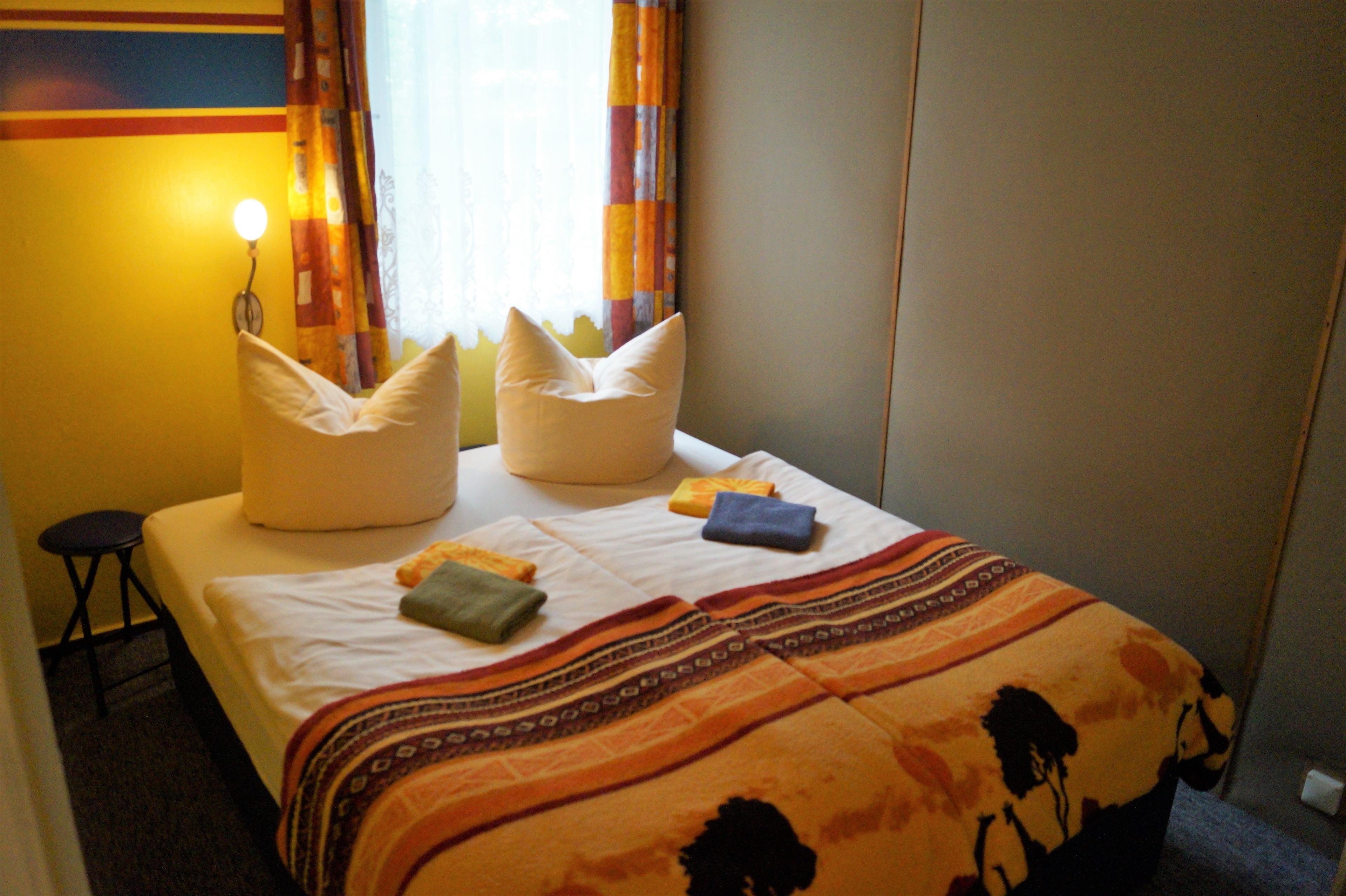 Doppelhaus Typ 9 ist eine Doppelhaushälfte für bis zu 5 Pers. (3Erw.+1Kind+1Kleinkind). Die Nutzfläche beträgt ca.34 m² Nutzfläche incl. eine mit Gartenmöbeln ausgestattete Terrasse, eine komplett eingerichtete Wohnküche mit Elektrokochplatten, Kühlschrank, Spüle, Kaffeemaschine etc., einen Schlafraum mit Doppelbett, einen Schlafraum mit Etagenbett & Kinderbett, sowie ein Bad mit Dusche & WC.
