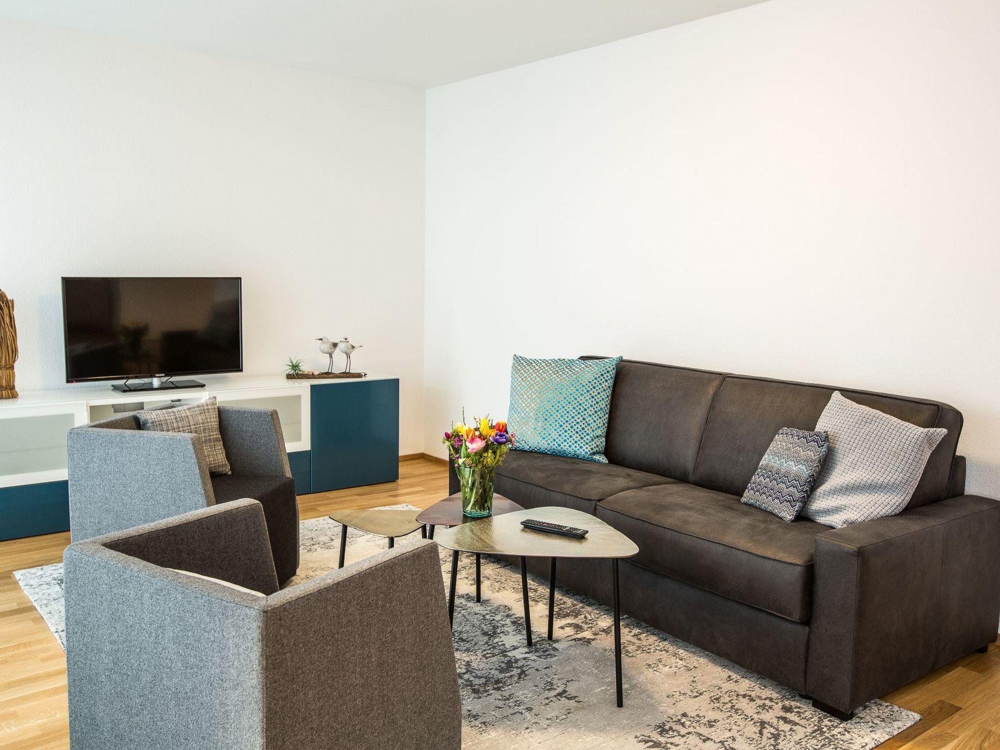 At 110 m², the holiday flat is larger than comparable flats and is located on the 2nd floor and can be reached directly by lift from the reserved underground parking space. The flat has upscale furnishings and offers:
