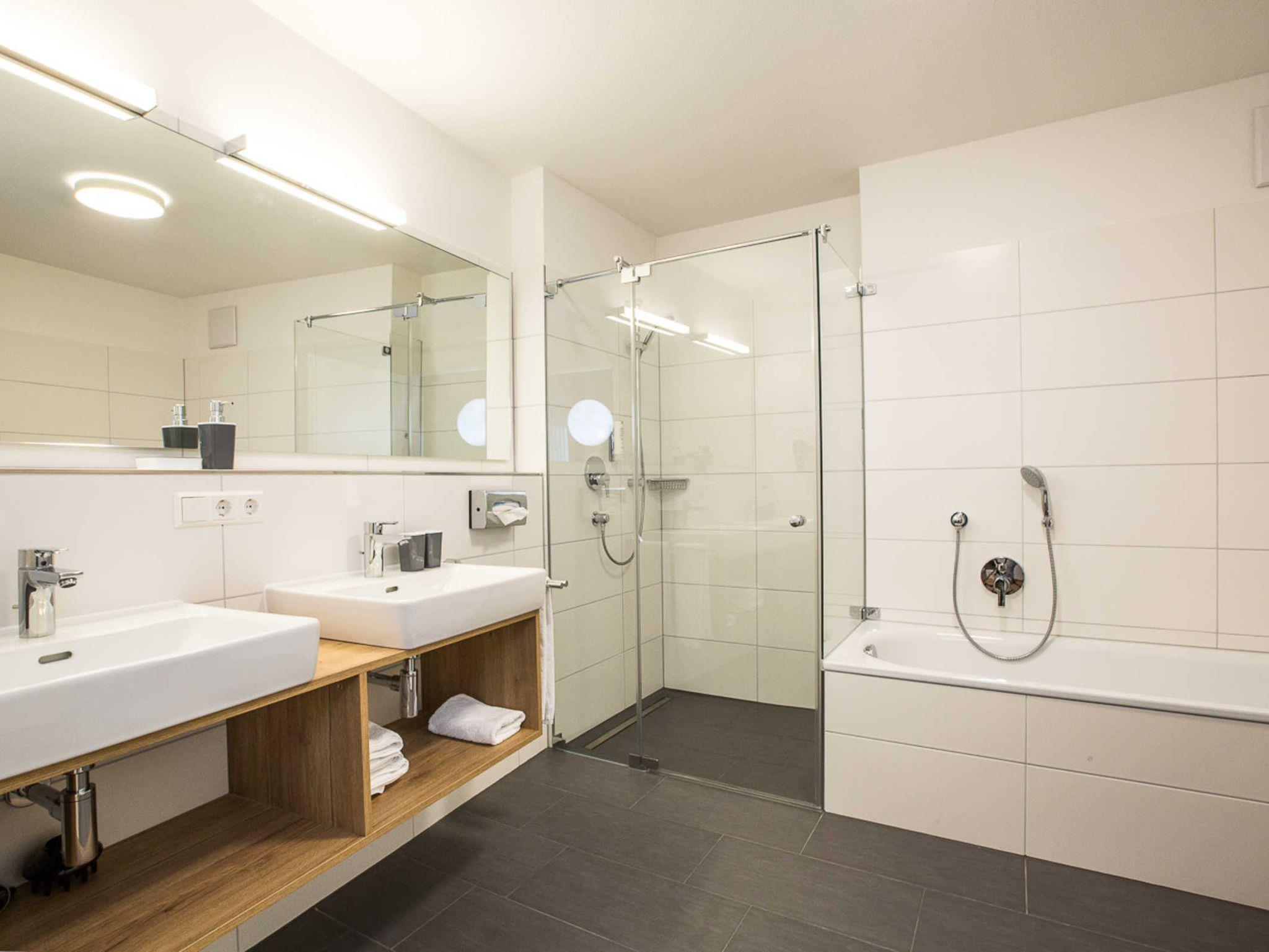 Die Neubauwohnung bietet einen Tiefgaragenstellplatz und Fahrradkeller. Die Wohnung verfügt über eine gehobene Austattung für bis zu 6 Personen, großzügiger Balkon mit Platz für bis zu 4 Personen - eigener Tiefgaragenstellplatz und Fahrradkeller direkt im Haus vorhanden.