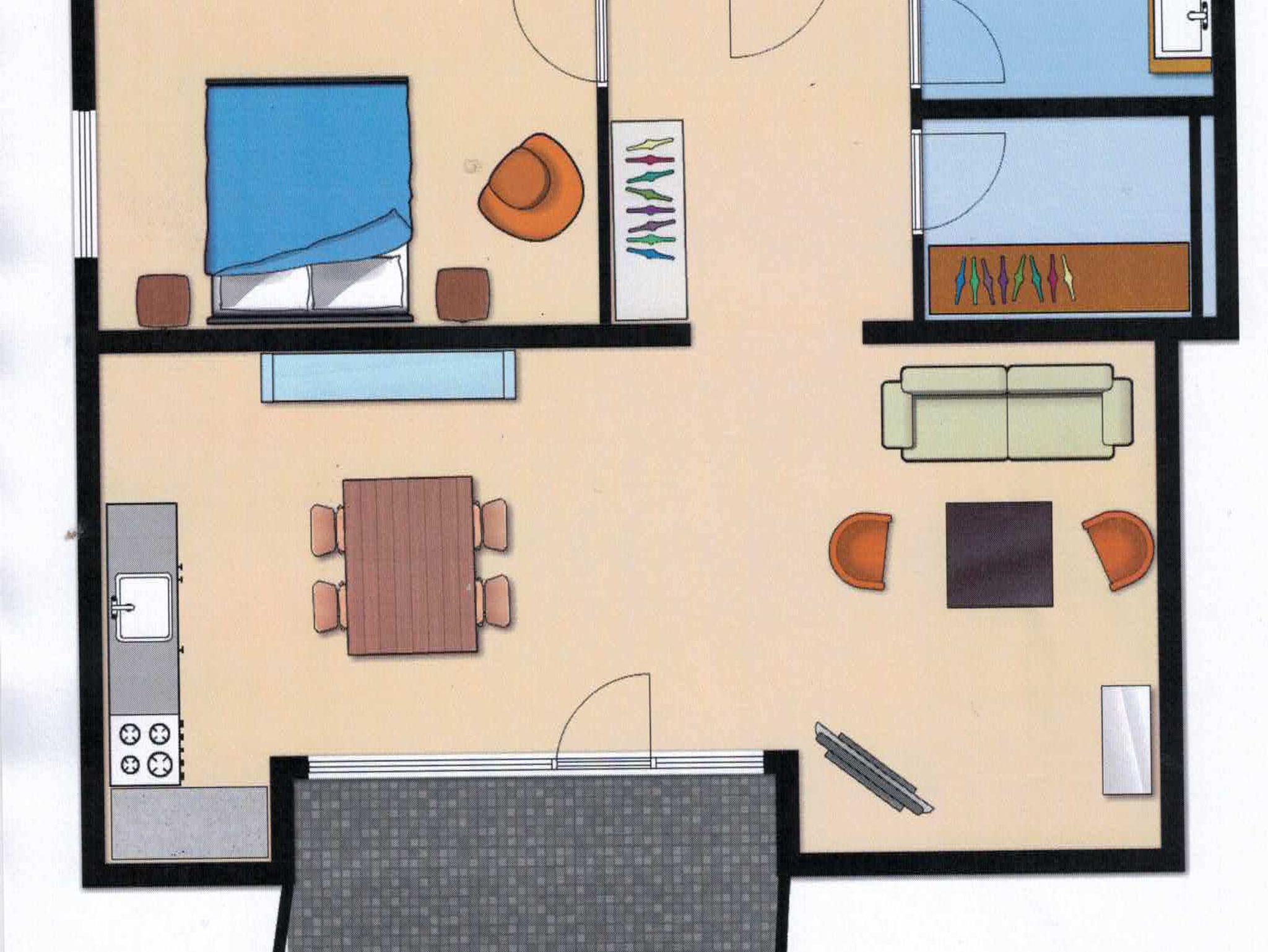 Das helle, geräumige Apartment liegt im 2. Stock einer Wohnanlage und verfügt über einen Balkon, sowie über zwei Flachbild-Smart-TV, ein großzügiges Bad und einen begehbaren Kleiderschrank. Zusätzlich besteht die Möglichkeit auf einer komfortablen Schlafcoach noch 2 Personen zusätzlich unterzubringen.