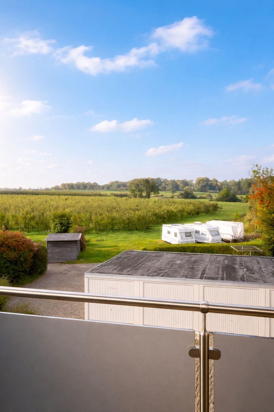 Vom Balkon genießen Sie einen herrlichen Blick auf die umliegenden Obstplantagen – ideal, um den Tag entspannt ausklingen zu lassen.