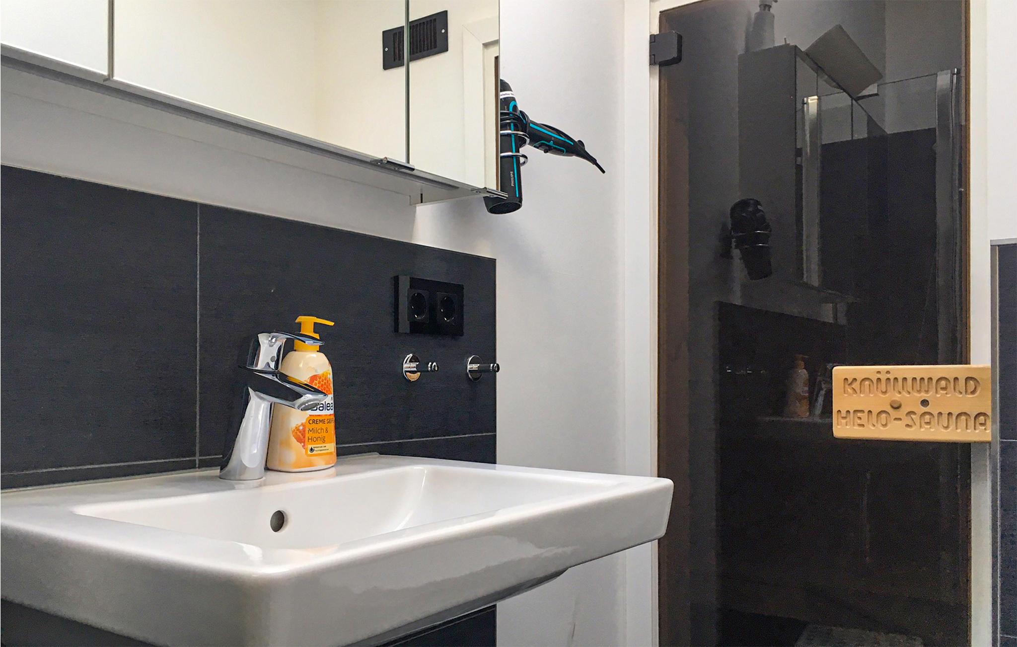 Feriehuset ble renovert til en høy standard i 2018. Badet har et moderne dusjkabinett med termostat.