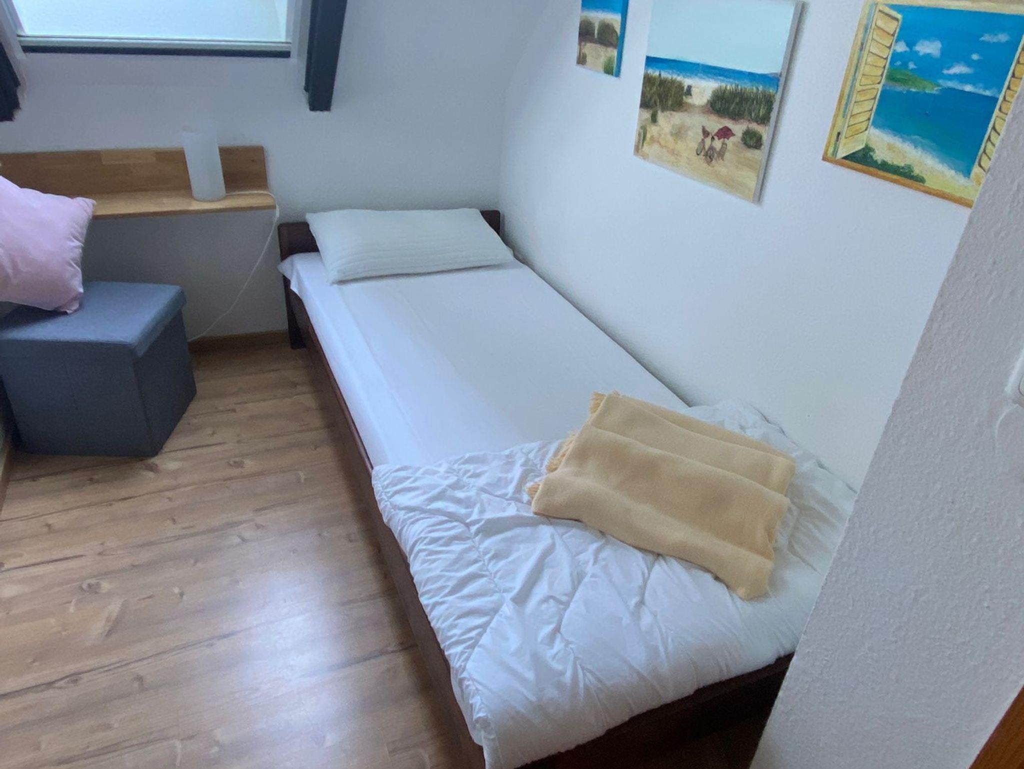 • 1 kleines Schlafzimmer im 1. OG (Bett 80cm x 2m)