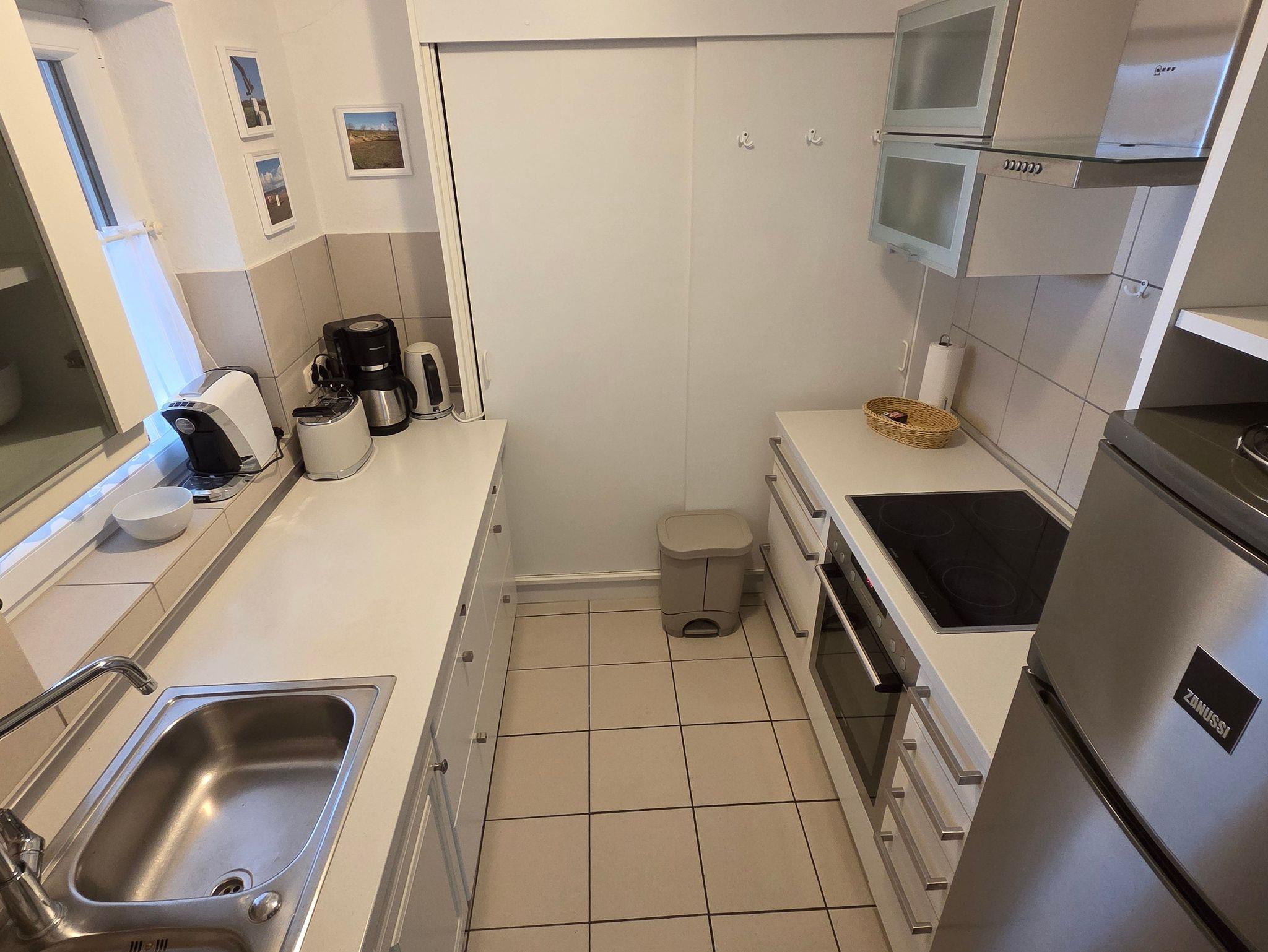 Erdgeschoss mit Terrasse für 2-4 Personen inkl. Gartenmöbel, Liegewiese, Strandkorb und Sandkiste. Wohn-/Schlafraum, Schlafraum, Küche, Dusche/WC. Sat-TV, Telefon, Kinderbett und Kinderhochstuhl. Die Wohnung verfügt über einen Wlan-Anschluß. Bettwäsche und Handtücher vorhanden.