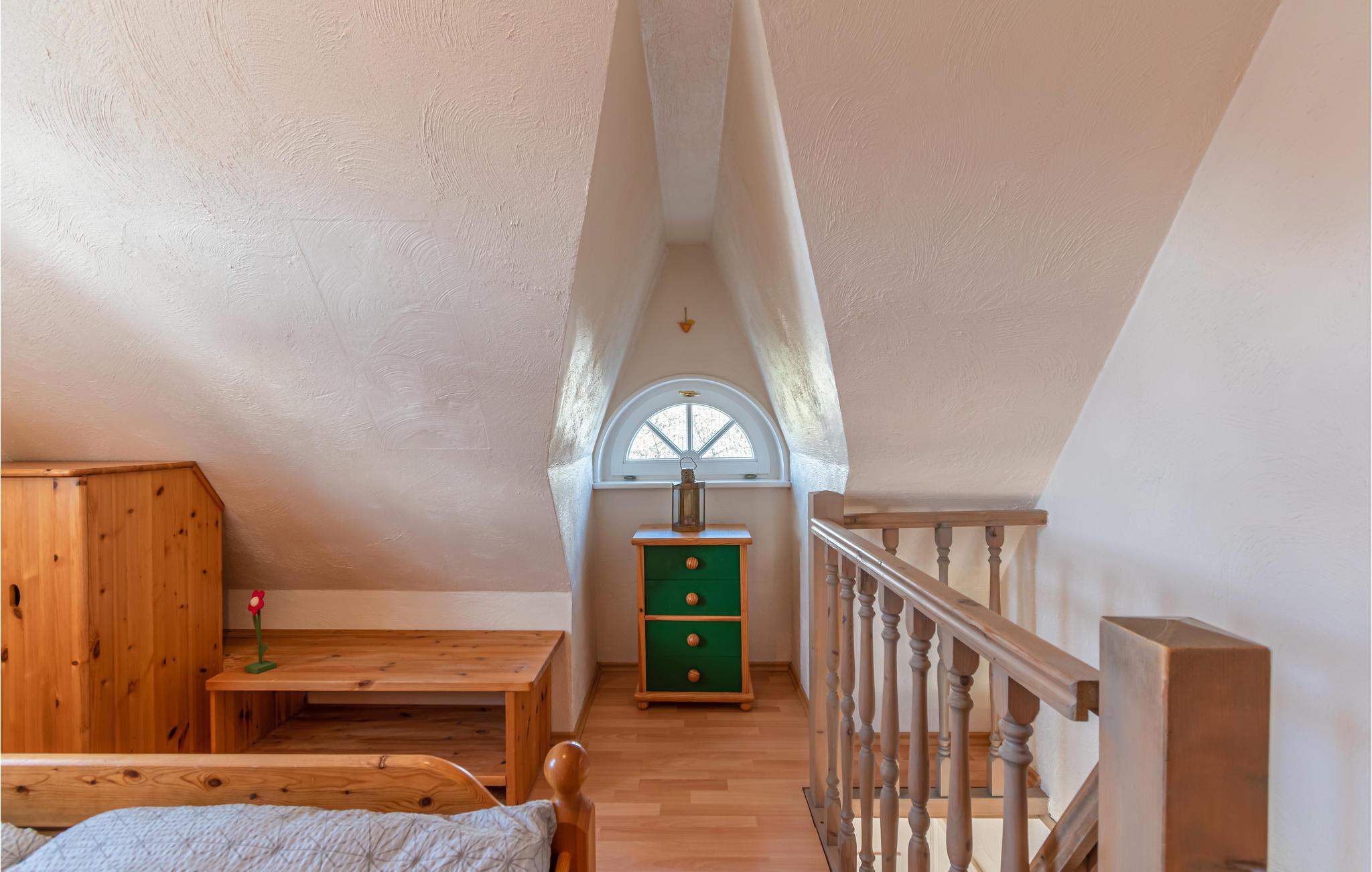 Inne i huset finner du et lyst og moderne interiør i to etasjer. I første etasje finner du spiseplass, kjøkken og stue. I det koselige sofahjørnet i stuen kan du slappe av foran TV-en eller komfyren om kvelden. En bratt trapp fører opp til øverste etasje, hvor soverommene ligger. Vær oppmerksom på at barnesoverommet har adkomst via hovedsoverommet.