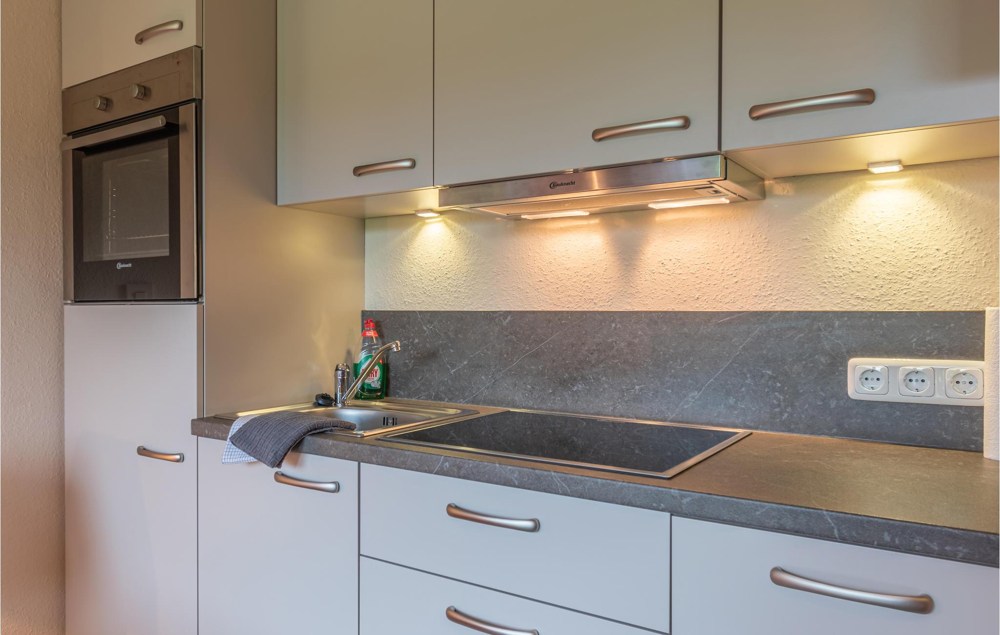 Leiligheten har et koselig spisekjøkken med en sammenleggbar seng. En full-size dobbeltseng for 2 personer er gjemt der. En flatskjerm-TV er tilgjengelig for koselige TV-kvelder. Det velutstyrte kjøkkenet har oppvaskmaskin, keramisk kokeplate med innebygd stekeovn, kjøleskap med fryser, stekeovn, kaffemaskin og brødrister. Spiseplassen for 2 personer inviterer deg til å nyte et koselig måltid med en fantastisk romantisk utsikt over diget. Terrassen er ideell for å nyte det vakre været. Det lille, men fine badet har dusj, toalett og servant. Det er også en hårføner.