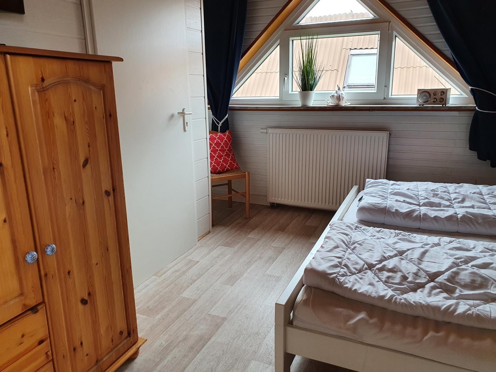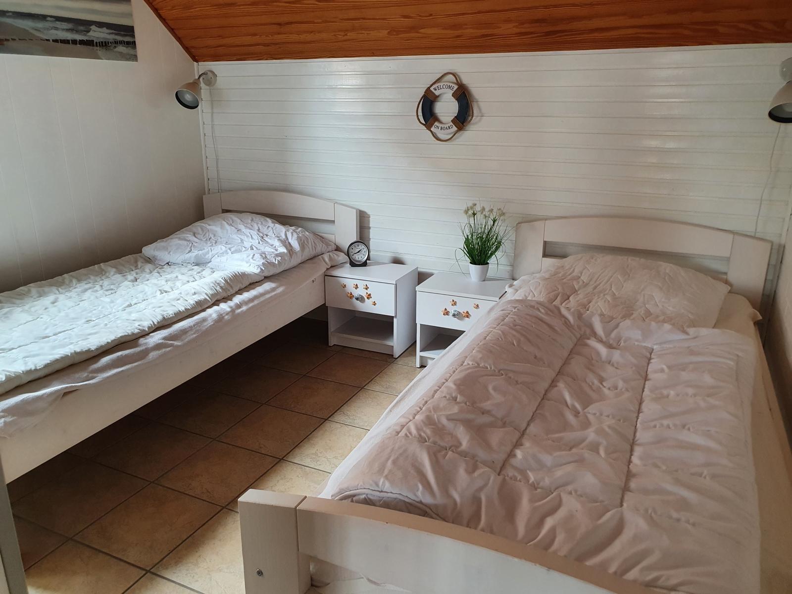 Das Schlafzimmer im EG hat ein Fenster zur Deich-/Meerseite. Dort befinden sich 2 Einzelbetten mit Matratzen 90x200 cm (Testsieger) mit Nachttisch und Leselampe und Kleiderschrank mit integriertem Wertsachentresor zur kostenfreien Benutzung. Bitte bringen Sie Laken, Kopfkissenbezüge und Matratzenbezüge, sowie Handtücher mit oder leihen sich diese bei Ankunft beim Wäsche-Service des Tourismus-Service, Tel. 04854 219010.