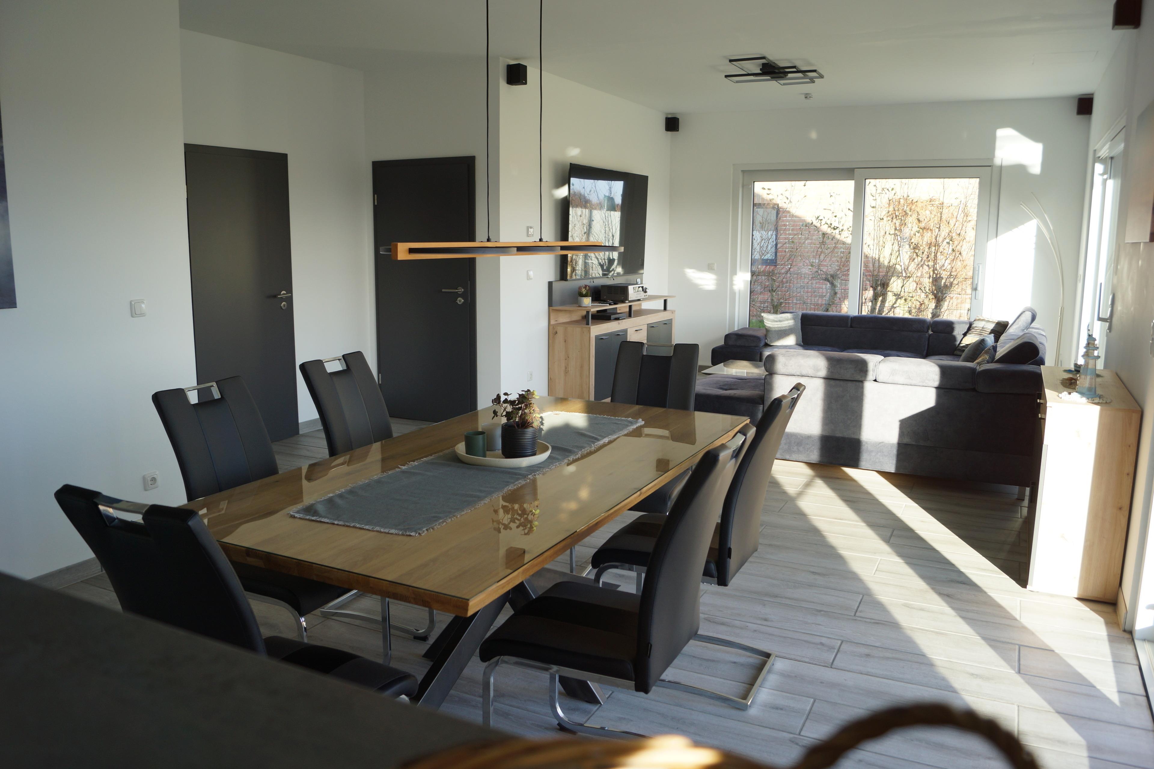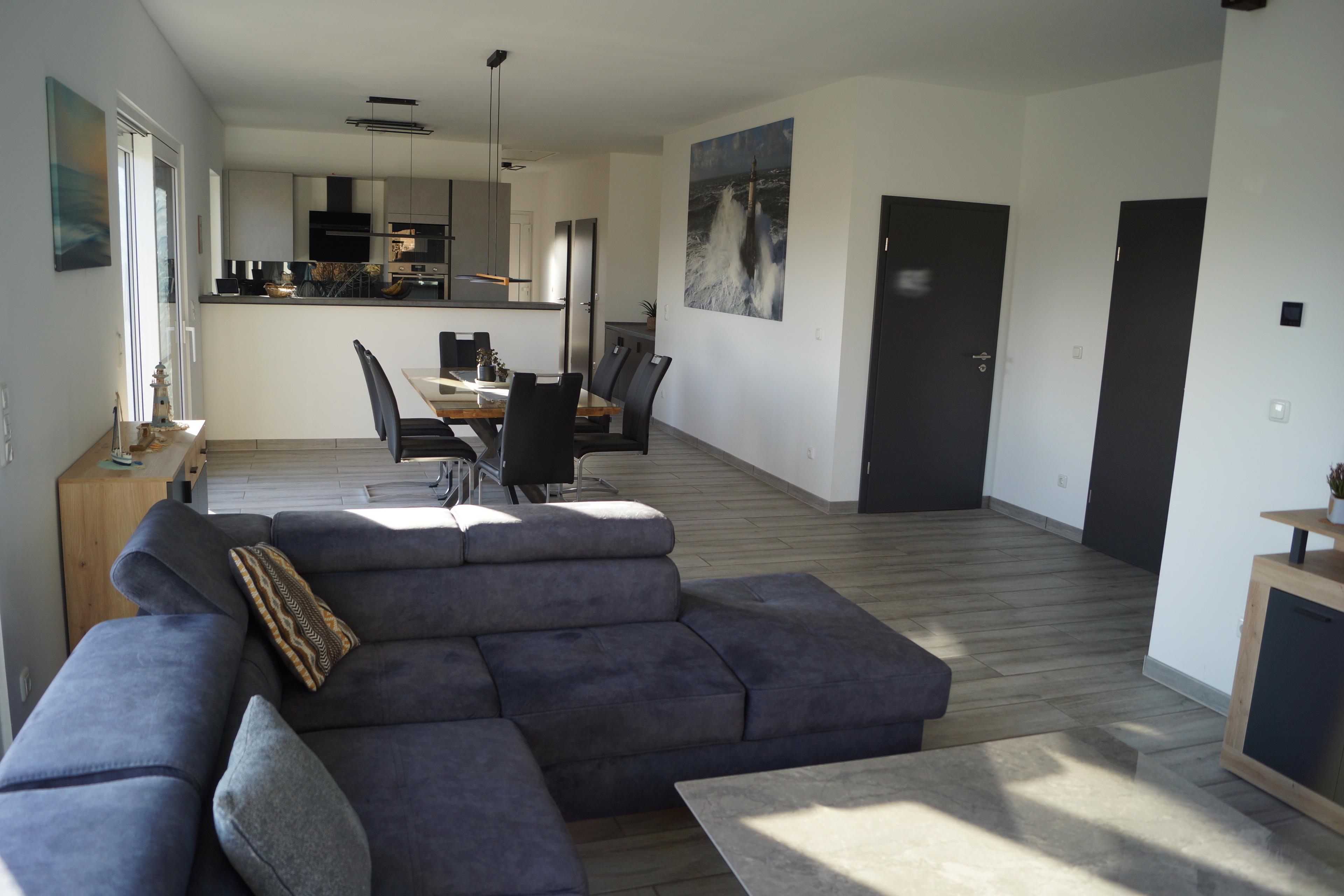 Das komfortable, ebenerdige Ferienhaus wird erstmals zum Saisonbeginn 2026 vermietet und lädt bei sommerlichem Wetter in den 600m² großen, vollständig eingezäunten Garten mit 40m² Holzterrasse ein. Auch bei "nordischem" Wetter bietet das Haus beste Bedingungen für erholsame Urlaubstage. In der großzügigen Sauna oder im beheizten Whirlpool kann man sich nach einem Spaziergang schnell wieder auf den gemütlichen Abend vorbereiten. Die Heimkinoanlage mit 75"-4K-Smart-TV, Blue-Ray Disk-Player und 5.1 Dolby-Surround-System sorgen für angenehme Unterhaltung.