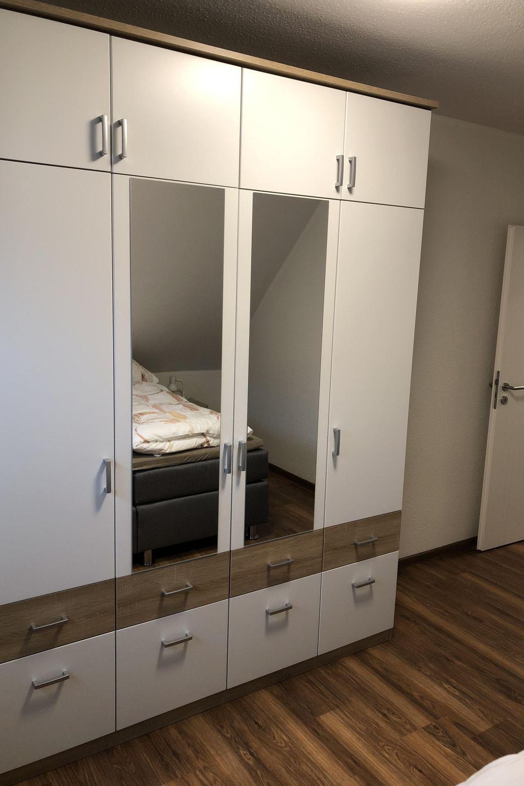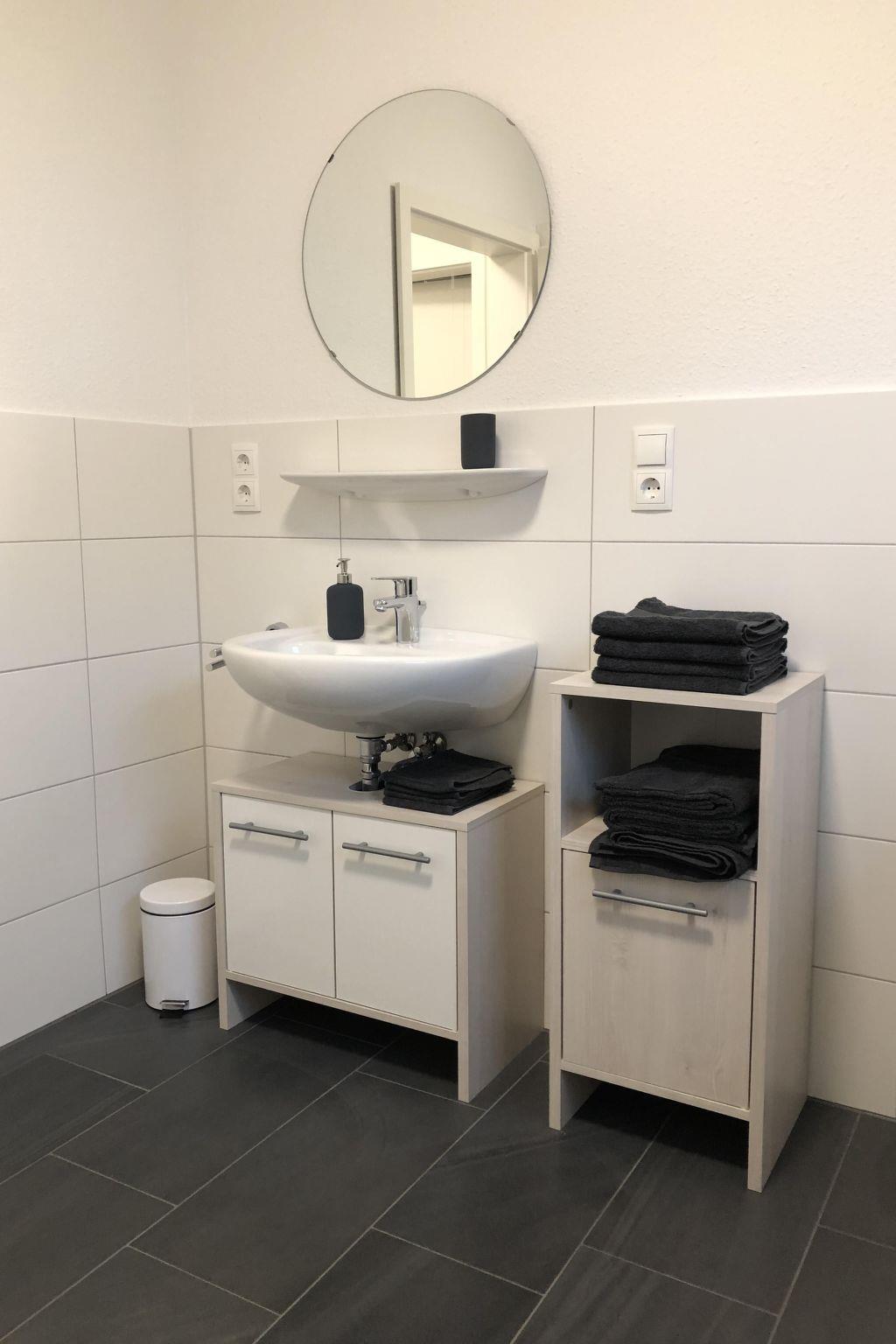 Wonderful holiday home directly on the reservoir The lovingly furnished flat Neubau (on the upper floor) offers you 2 bedrooms, living room and a fully equipped kitchen and a comfortable bathroom and is only 200 metres away from the beautiful dam (reservoir), which offers families plenty of space for activities in summer and attracts those seeking peace and quiet in autumn and winter. Our house offers you on 100 square metres not only a lot of cosiness, but also a lot of space, in which you can really relax after a hike or a visit to the numerous activities such as the " climbing forest at the dam" or the " animal and leisure park Thüle" ... Domicile layout : Beautiful and bright holiday flat with 3 rooms on the upper floor with approx. 75 m² usable area - equipped for up to 4 persons. First floor: very high-quality designed, light-flooded living area. Flat screen TV. Integrated kitchen with dishwasher, microwave and coffee machine. Sunny south-facing terrace. A beautifully designed, cosy open room with double bed (approx. 180 x 200 cm) and a bedroom with two single beds. Bathroom with shower, WC and towel radiator.