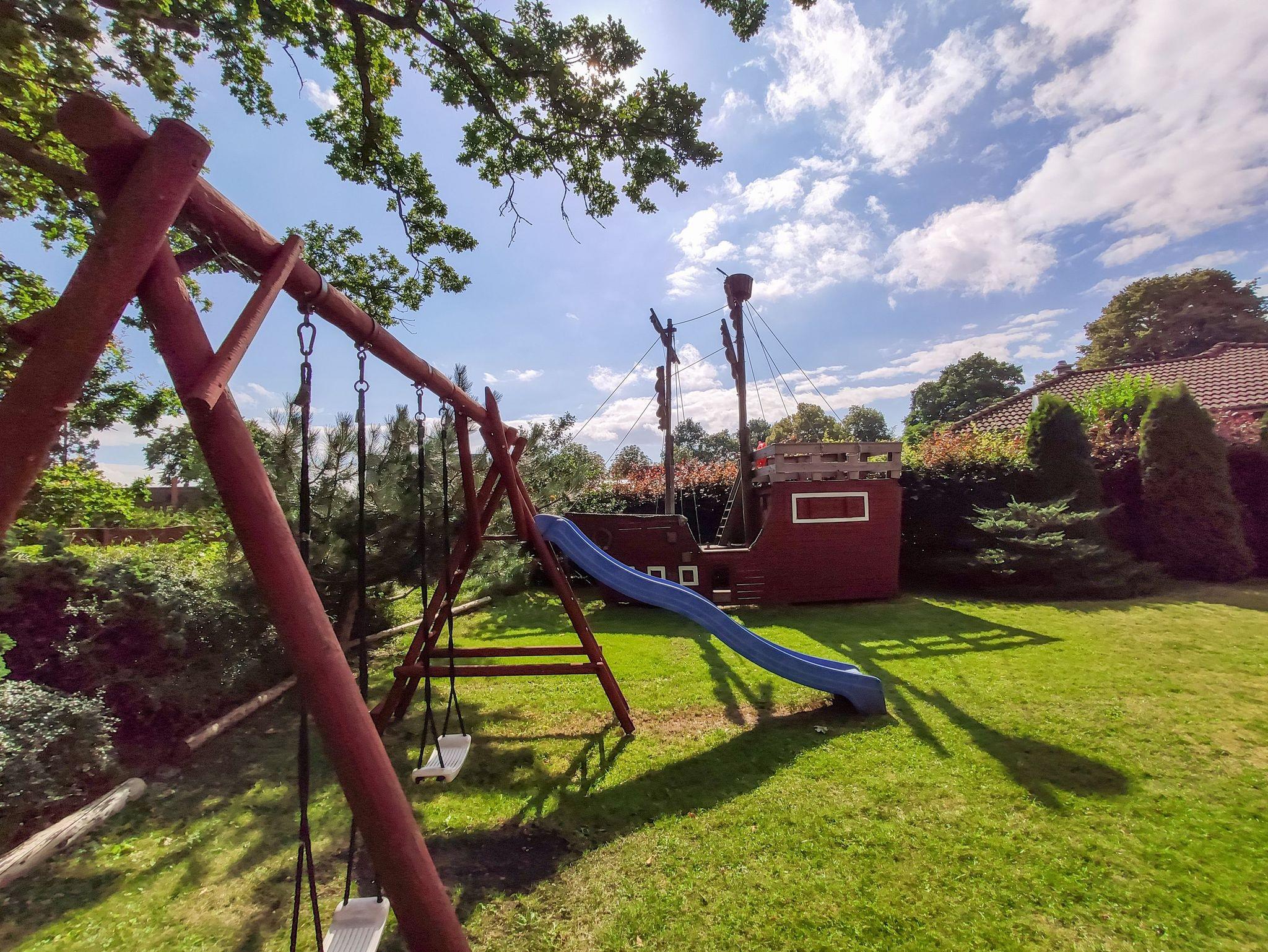 Das Haus ist umgeben von einem herrlich angelegtem Garten. Die Außenanlagen beinhalten offene Unterstellmöglichkeiten für Fahrräder etc. , Spielgeräte sowie ein Piraten-, Kletter- und Spielschiff deren Benutzung ausdrücklich auf eigene Gefahr hin erlaubt ist. Ihnen stehen zum Frühstücken, Grillen oder Sonnenbaden 3 Terrassen zur Verfügung, die nach Osten, Süden und Westen ausgerichtet sind. Sonnenschirm, Gartenmöbel und der Grill stehen schon für Sie bereit.