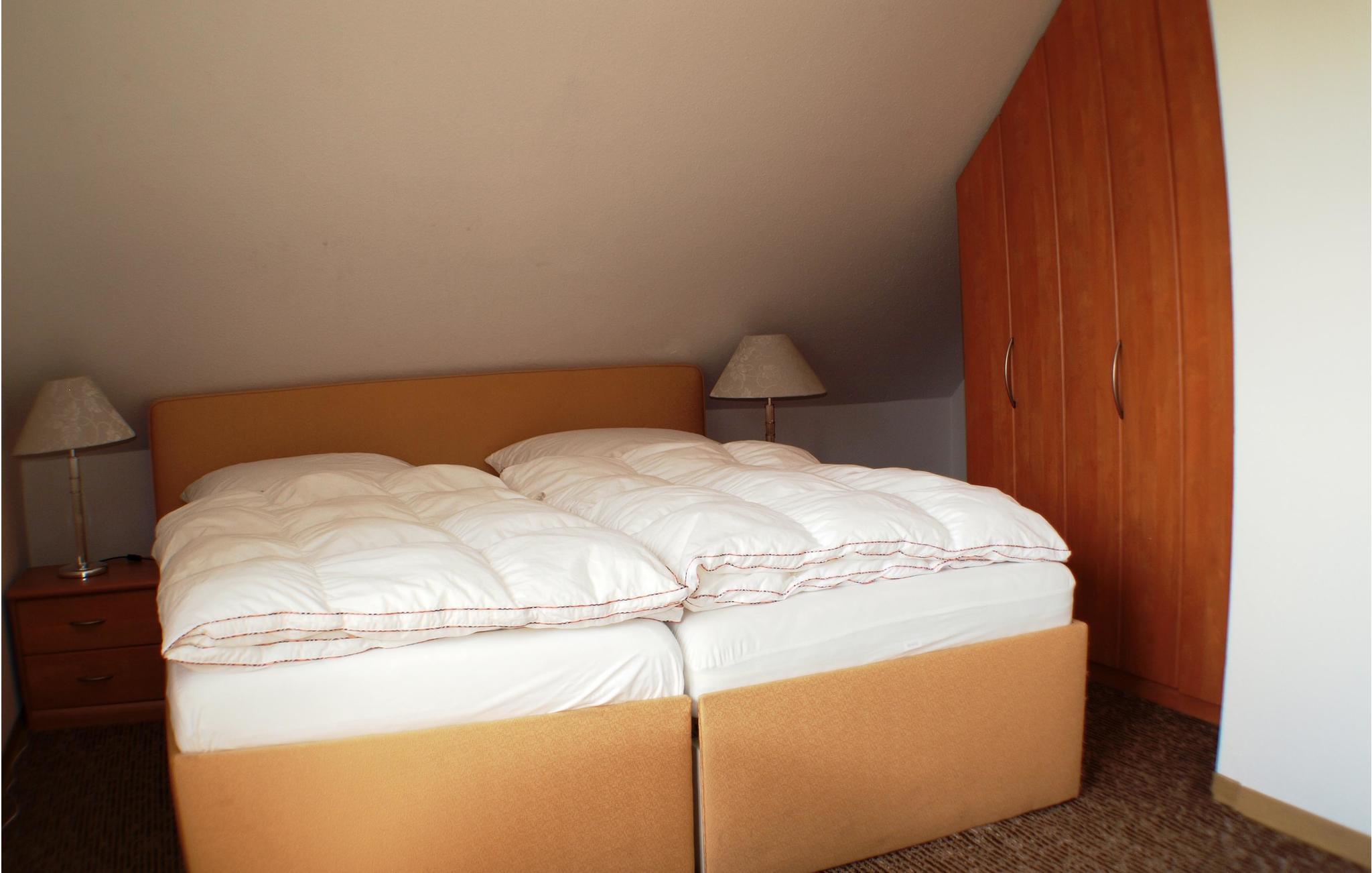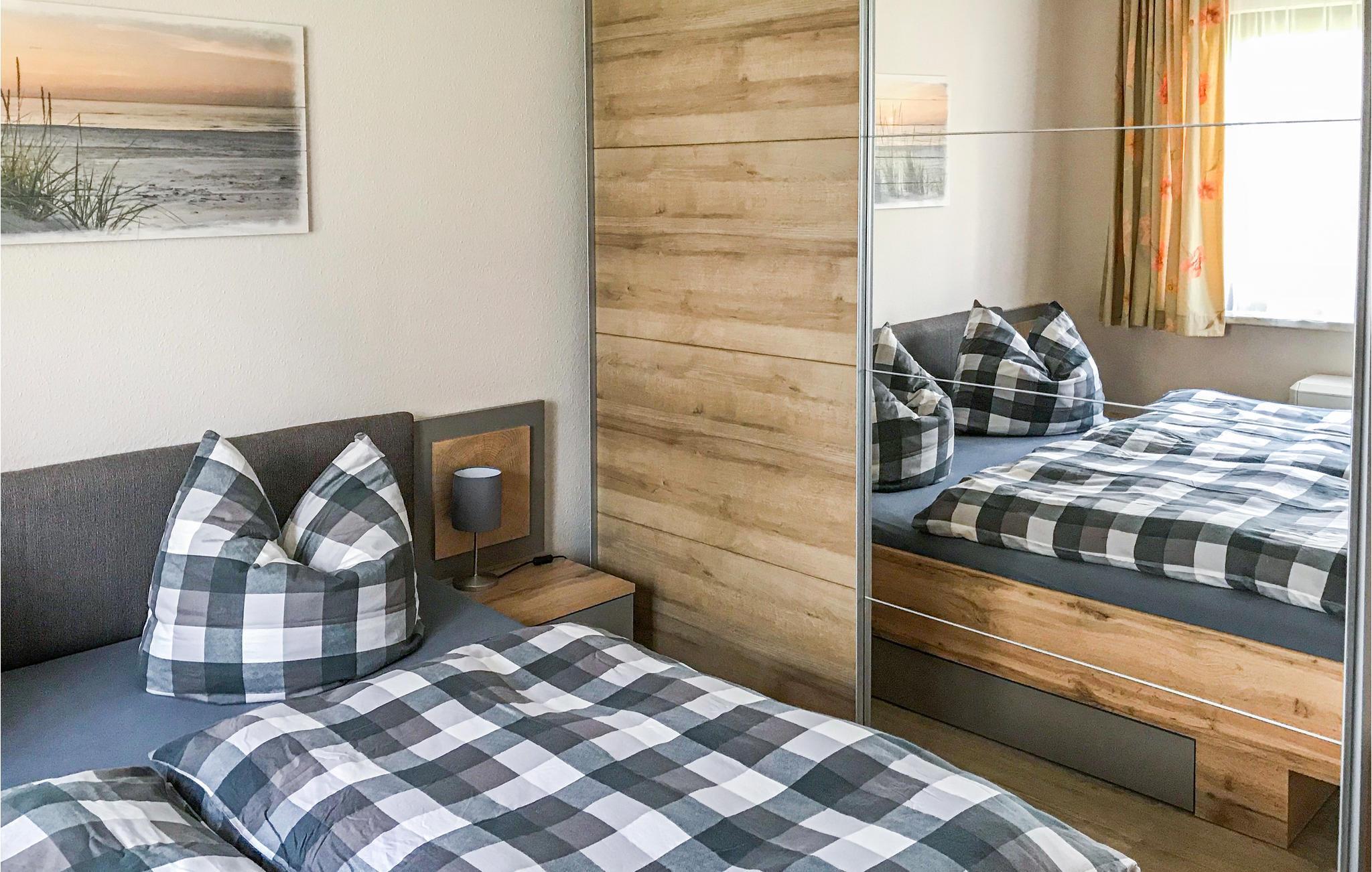 Dette huset ligger på en delt eiendom i nærheten av Bodstedt Bodden sammen med andre ferieboliger. Det er komfortabelt innredet og de romslige rommene har blitt renovert for å være lyse og vennlige. Hovedstuen ligger i første etasje, og det er en dobbeltseng i den andre stuen ovenpå. De umiddelbare omgivelsene er landlige og inviterer deg til å vandre gjennom enger og jorder. En liten offentlig badestrand ligger bare ca. 400 m unna, og det er heller ikke langt til bryggen for passasjerskip.