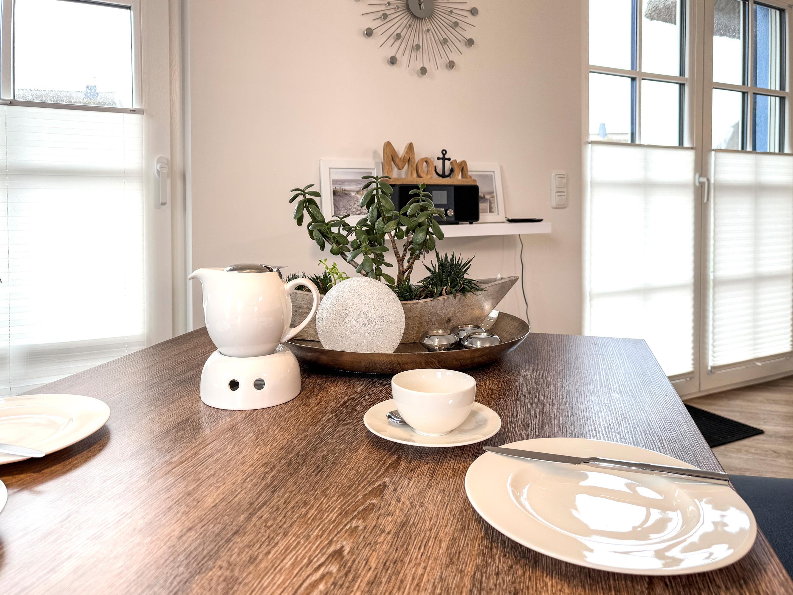 Der offene Wohn- und Essbereich mit Kamin lädt zu gemütlichen Abenden ein – sei es mit einem guten Buch, einem Glas Wein oder einem gemeinsamen Spieleabend. In der voll ausgestatteten Küche können Sie köstliche Mahlzeiten für Ihre Liebsten zaubern.