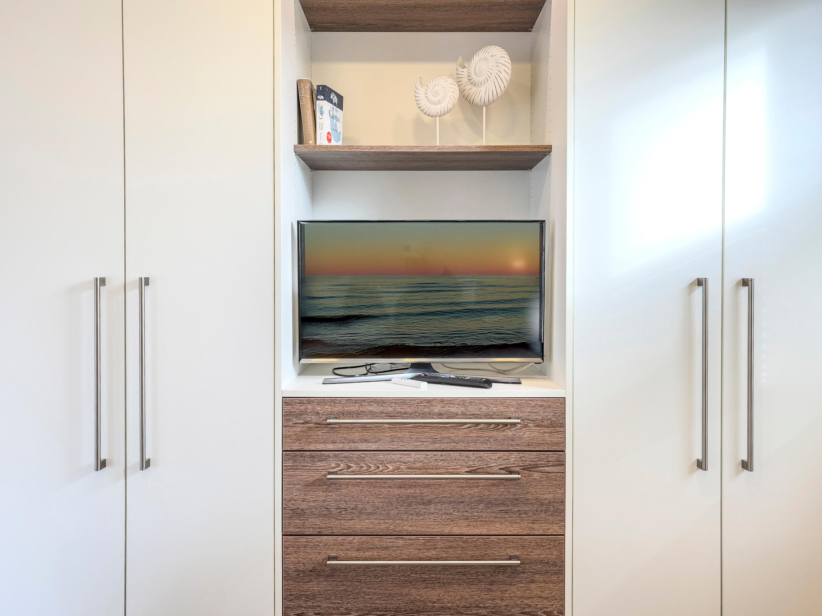 Für erholsame Nächte sorgen zwei Schlafzimmer mit hochwertigen Boxspringbetten und ein weiteres Gästezimmer mit einer bequemen Boxspringcouch. Beide Schlafzimmer verfügen über Sat-TV mit Sky.