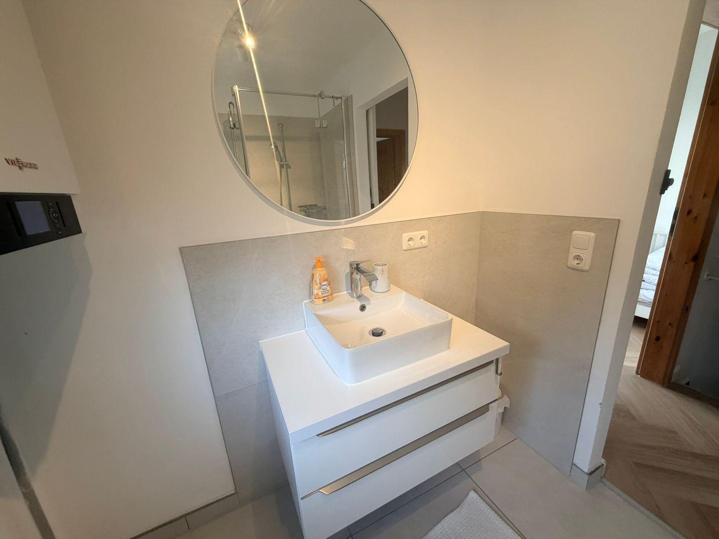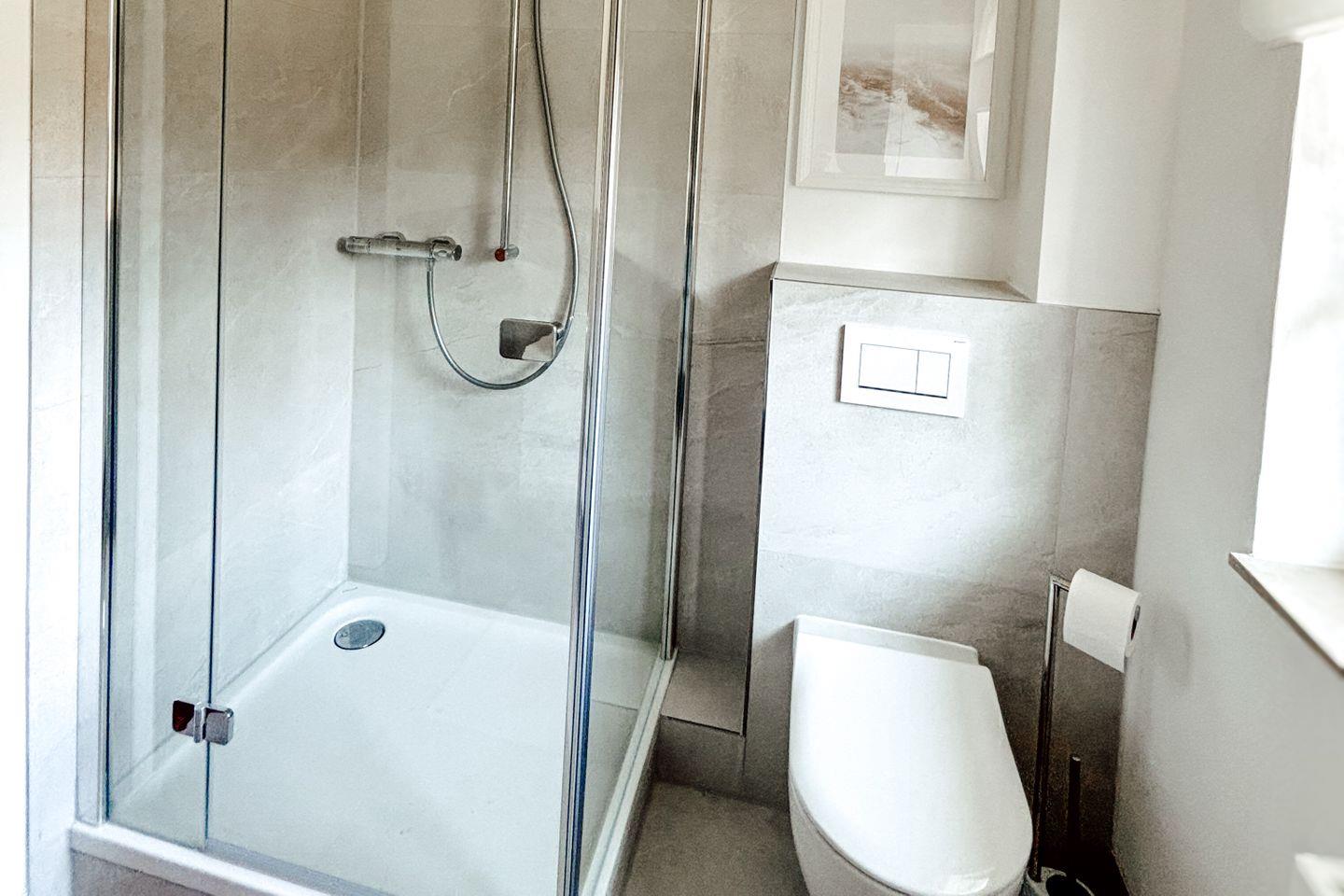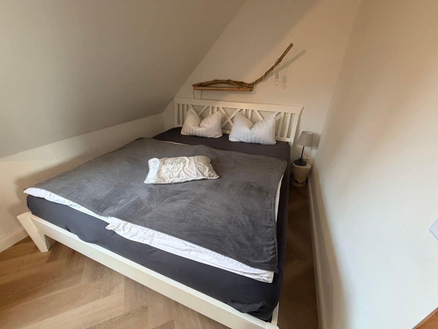 Zwei komfortable Schlafzimmer verfügen über Parkettboden und bieten Schlafmöglichkeiten für bis zu 7 Gäste inklusive Kinderbett und -hochstuhl, sodass auch Familien mit Babys willkommen sind. Vom zweiten Schlafzimmer gelangen Sie über eine steile Treppe in den Dachboden, auf dem sich ein weiteres Doppelbett befindet. Der Dachbodenzugang über die Treppe ist für ältere Menschen oder Menschen mit Behinderungen nicht zu empfehlen. Das Tageslichtbad ist mit einer Dusche (mit Wanne), Waschbecken, WC, Handtüchern, Badetüchern, Haartrockner und Spiegel umfassend ausgestattet. Die Eigennutzung einer Waschmaschine, Bügeleisen, Bügelbrett sowie ein Wäscheständer stehen Ihnen ebenfalls zur Verfügung.