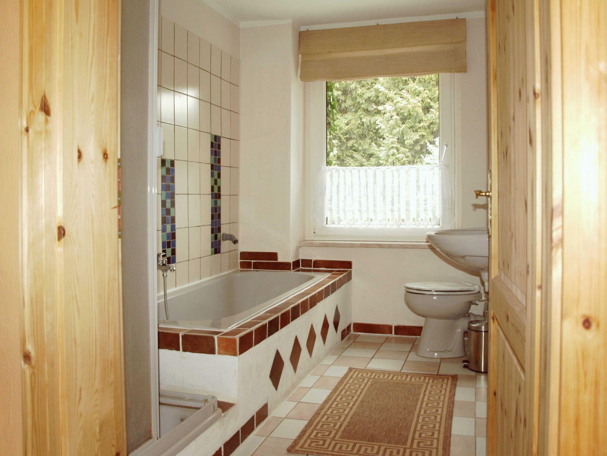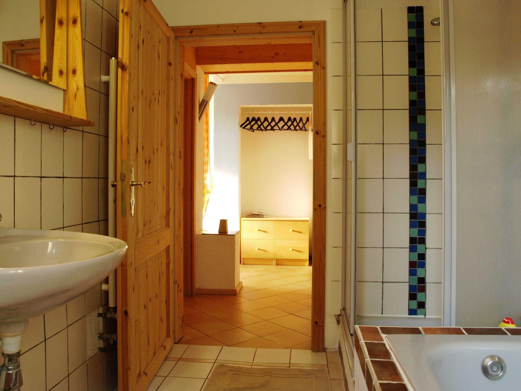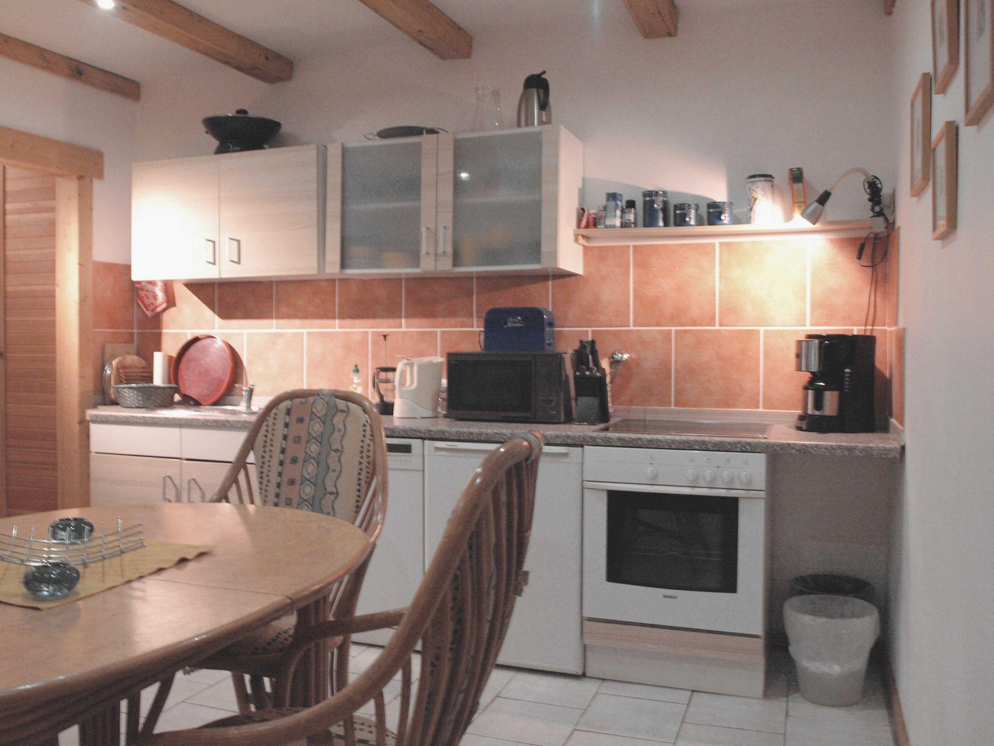 Die Ferienwohnung verfügt über einen seperaten Eingangsbereich. Das Badezimmer ist mit Fußbodenheizung ausgetattet und hat eine Badewanne und eine Dusche, sowie Waschbecken und WC. Die Küche ist separat und komplett eingerichtet. Am Esstisch finden 4-6 Personen Platz. Sie hat einen Zugang zur Außenterrasse.Im Esszimmer steht ein Tisch für 6 Personen. Das Wohnzimmer ist mit einer Sitzecke und einem Kaminofen ausgestattet. In beiden Schlafzimmern befinden sich Doppelbetten (180 x 200 cm).