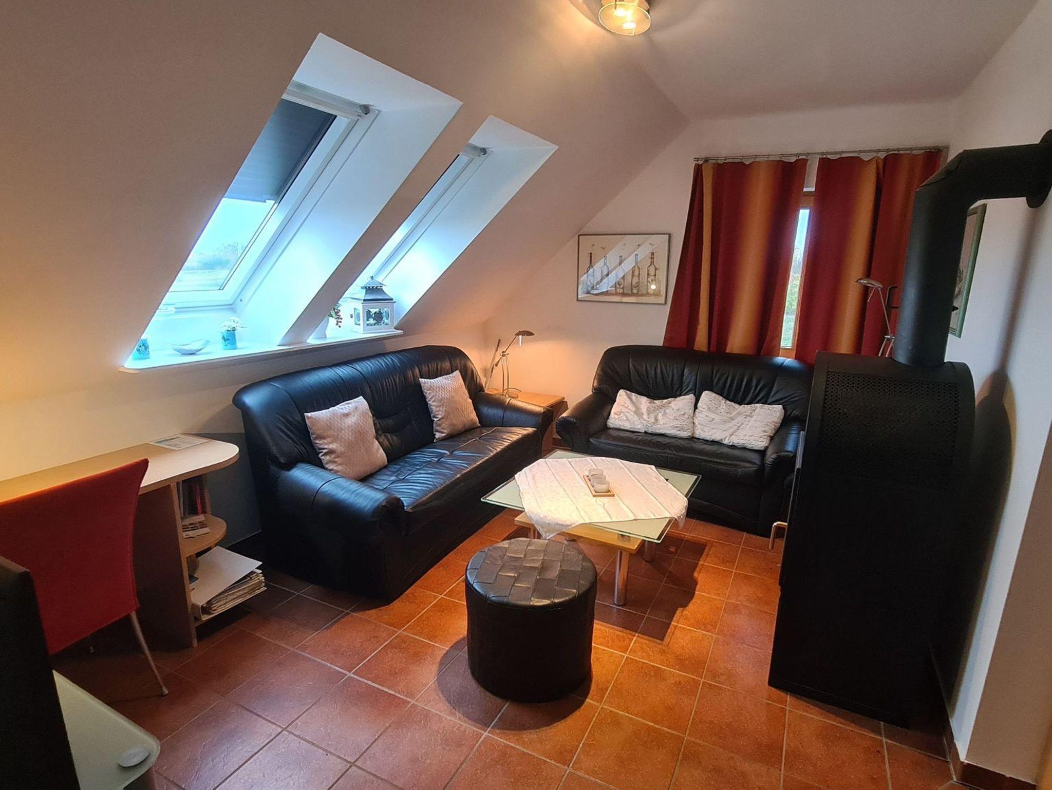Die geschmackvoll eingerichtete Ferienwohnung befindet sich im Haus Albatros in der 1. Etage rechts. Es gibt 2 seperate Schlafzimmer, eines verfügt über ein Doppelbett, das andere über 2 Einzelbetten. Von der großen möblierten Loggia haben sie einen weiten Blick in die Natur wo man Abends wunderschöne Sonnenuntergänge geniessen kann.