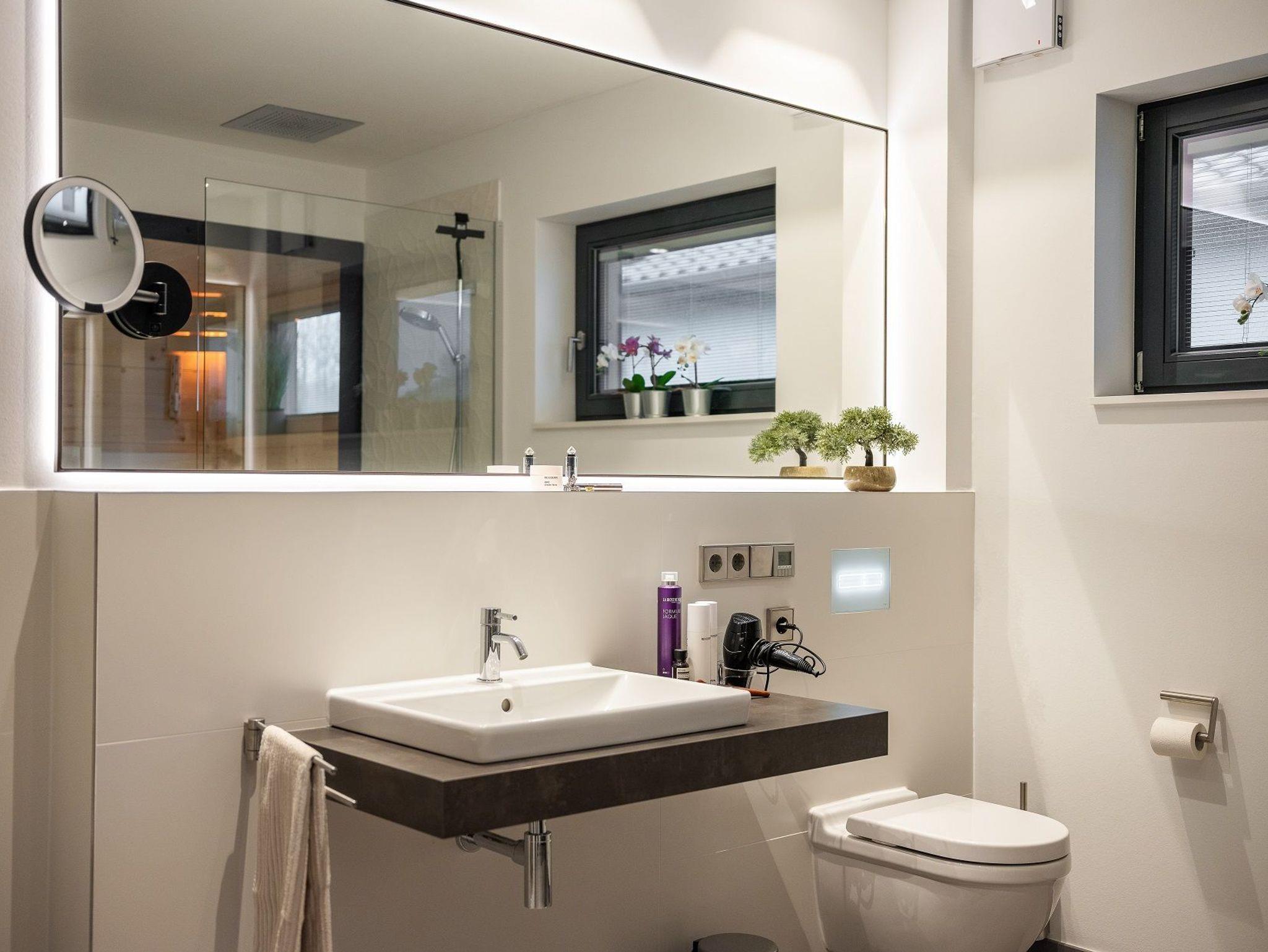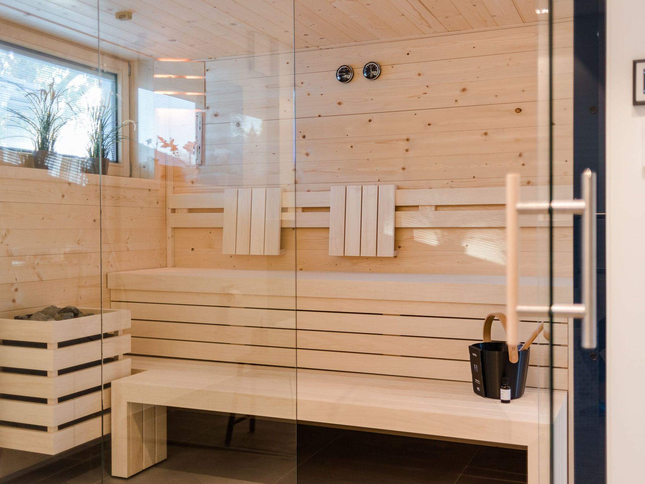 Ein weiteres Highlight ist der in die teilüberdachte 80m² Terrasse integrierte Außen Whirlpool, welcher ganzjährig wohltuende Erholung unter freiem Himmel arrangiert. Genießen Sie die sprudelnden Massagedüsen, die Ruhe und den Blick in die umliegende Natur oder nachts hinauf zum Sternenhimmel. Für zusätzliche Wellnesserlebnisse steht Ihnen die, mit einem Außenfenster versehene, verglaste Sauna im Masterbad sowie ein großer, vollständig eingezäunter Garten zwecks perfekter Regeneration sowie Sport & Spiel zur Verfügung.