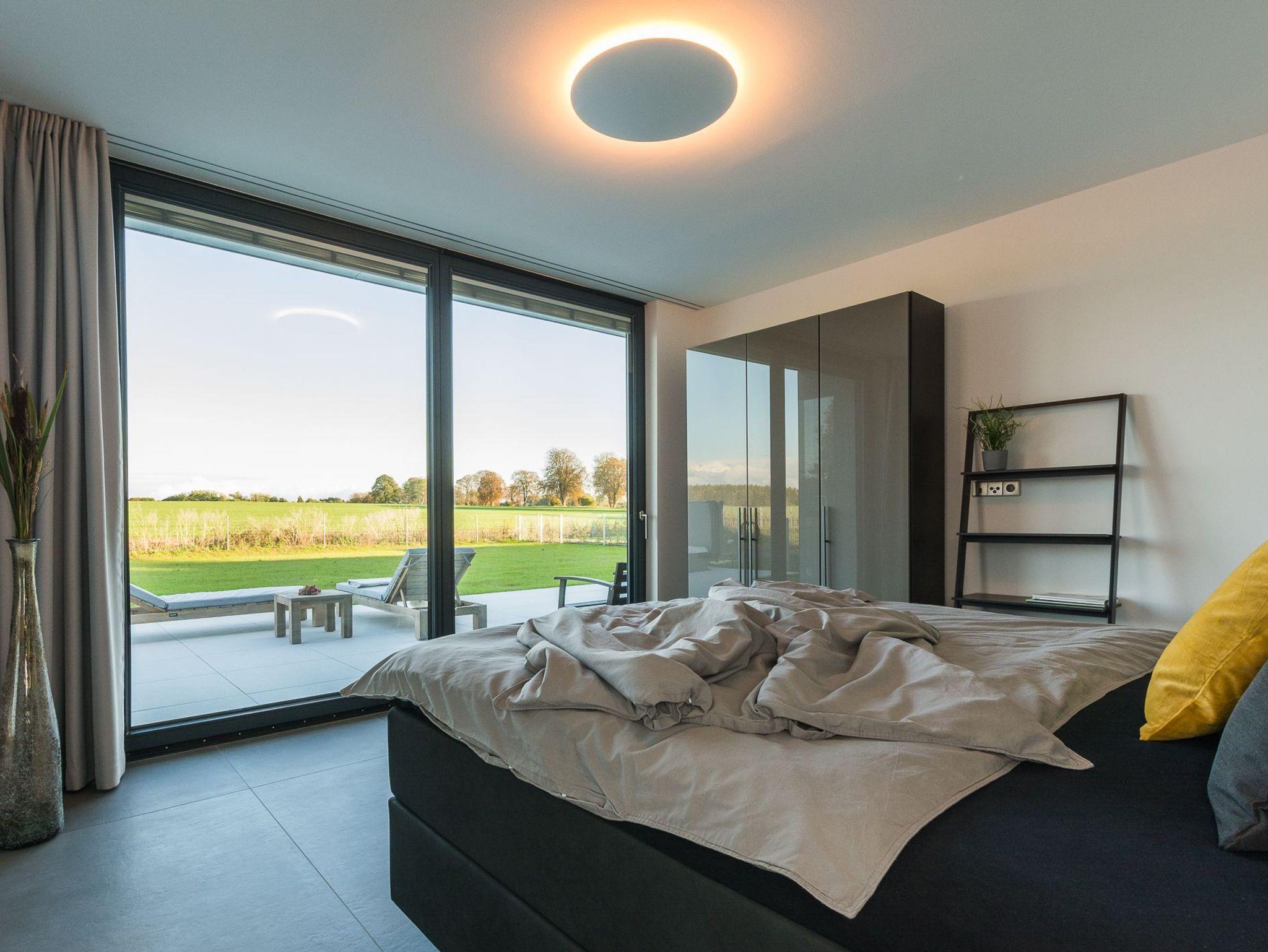 Exklusiver, freistehender Luxus-Flachdachbungalow mit Außen Whirlpool, Sauna, Kamin, 3 Schlafzimmern, 2 Bädern, Carport, Terrasse & großem Garten
