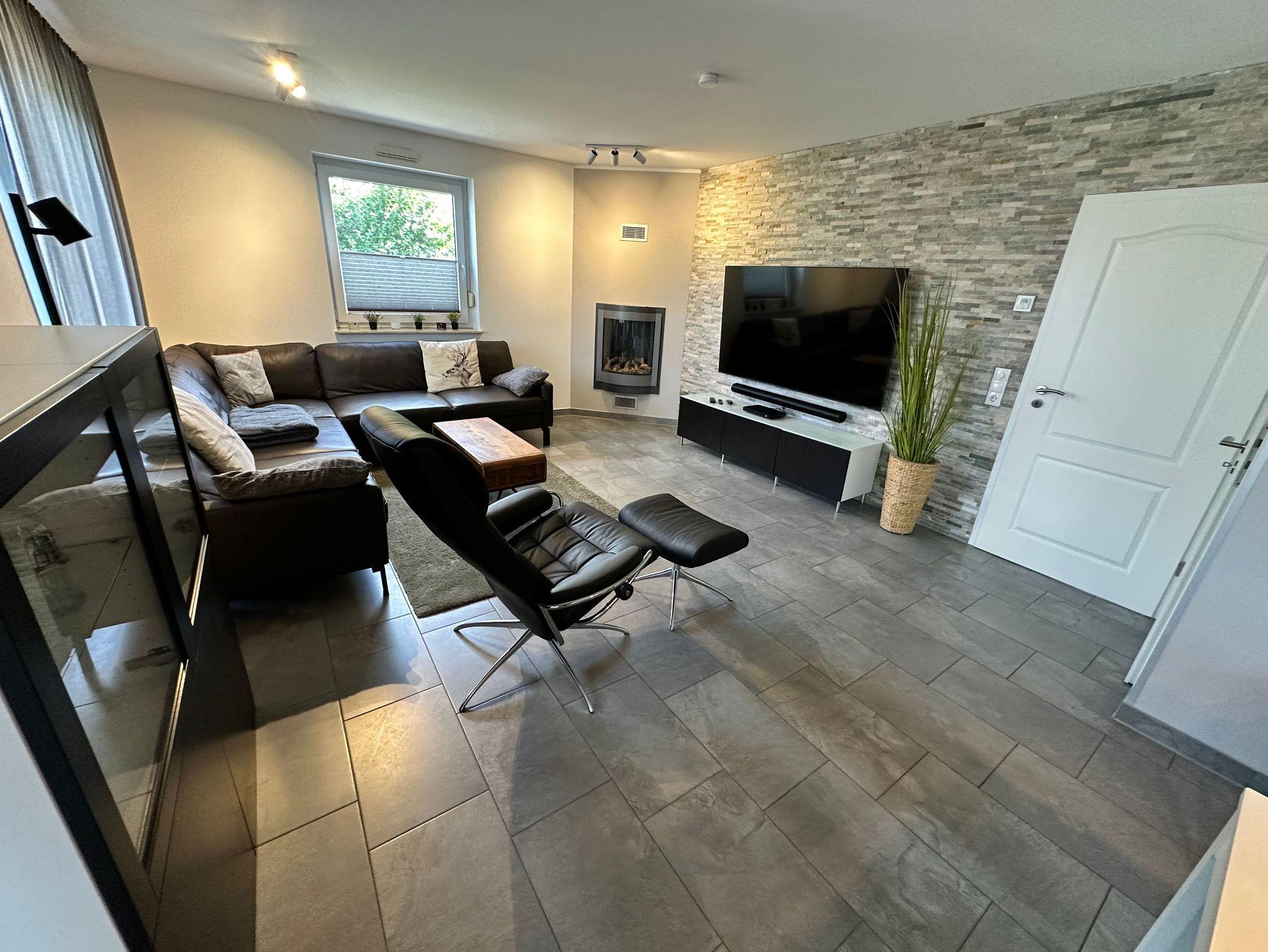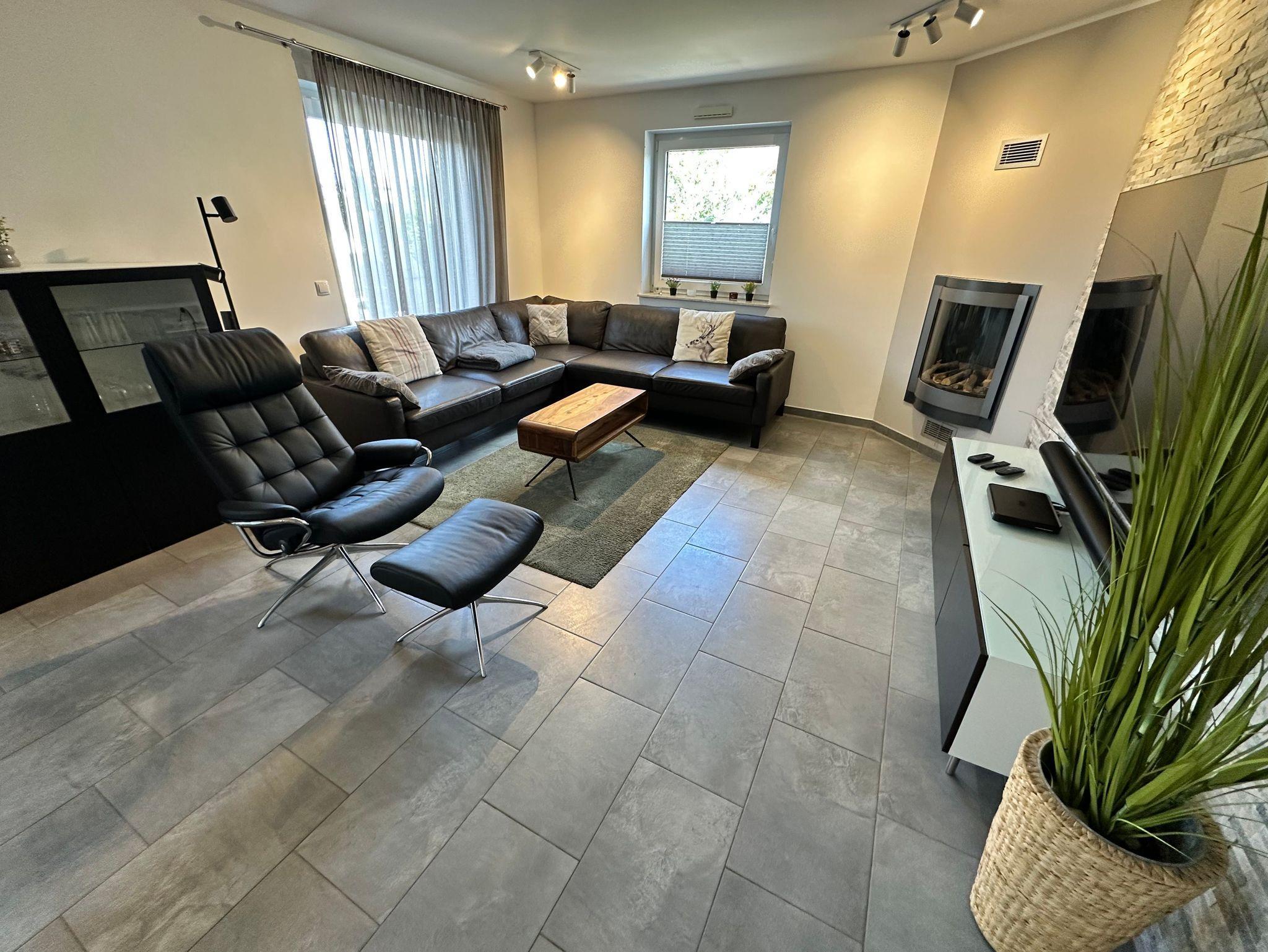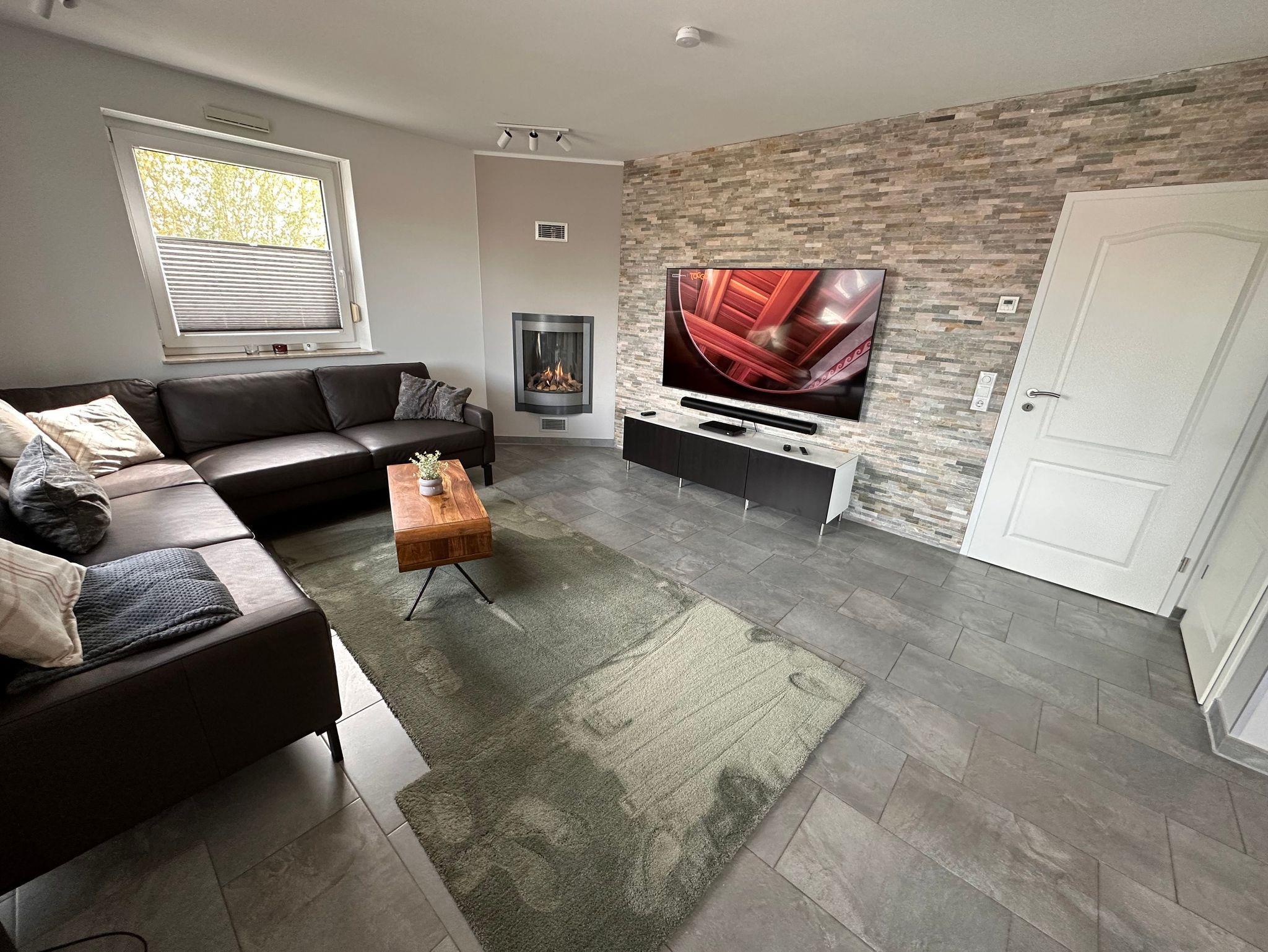 Lässig auf dem Sofa liegend, kann man komplett entspannen mit Musik oder Sky TV und einem Gaskamin.