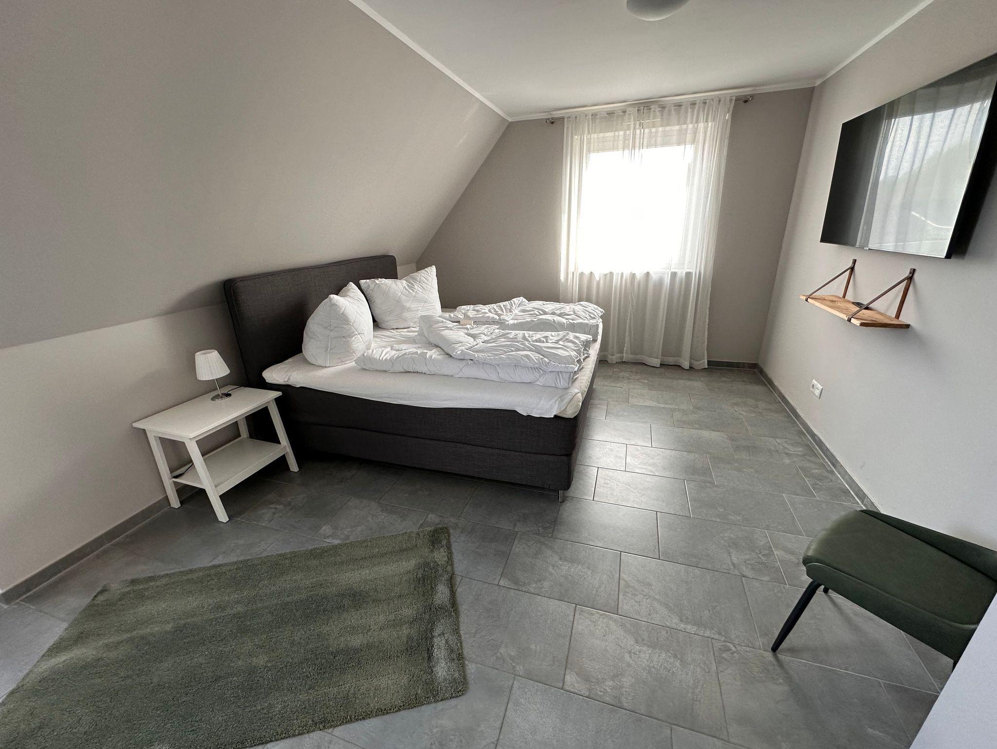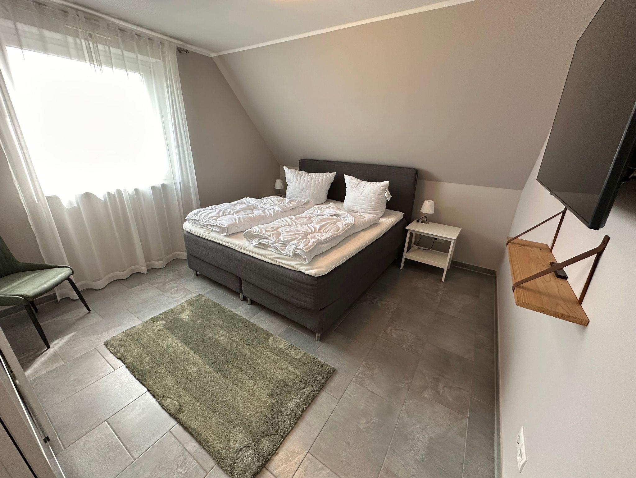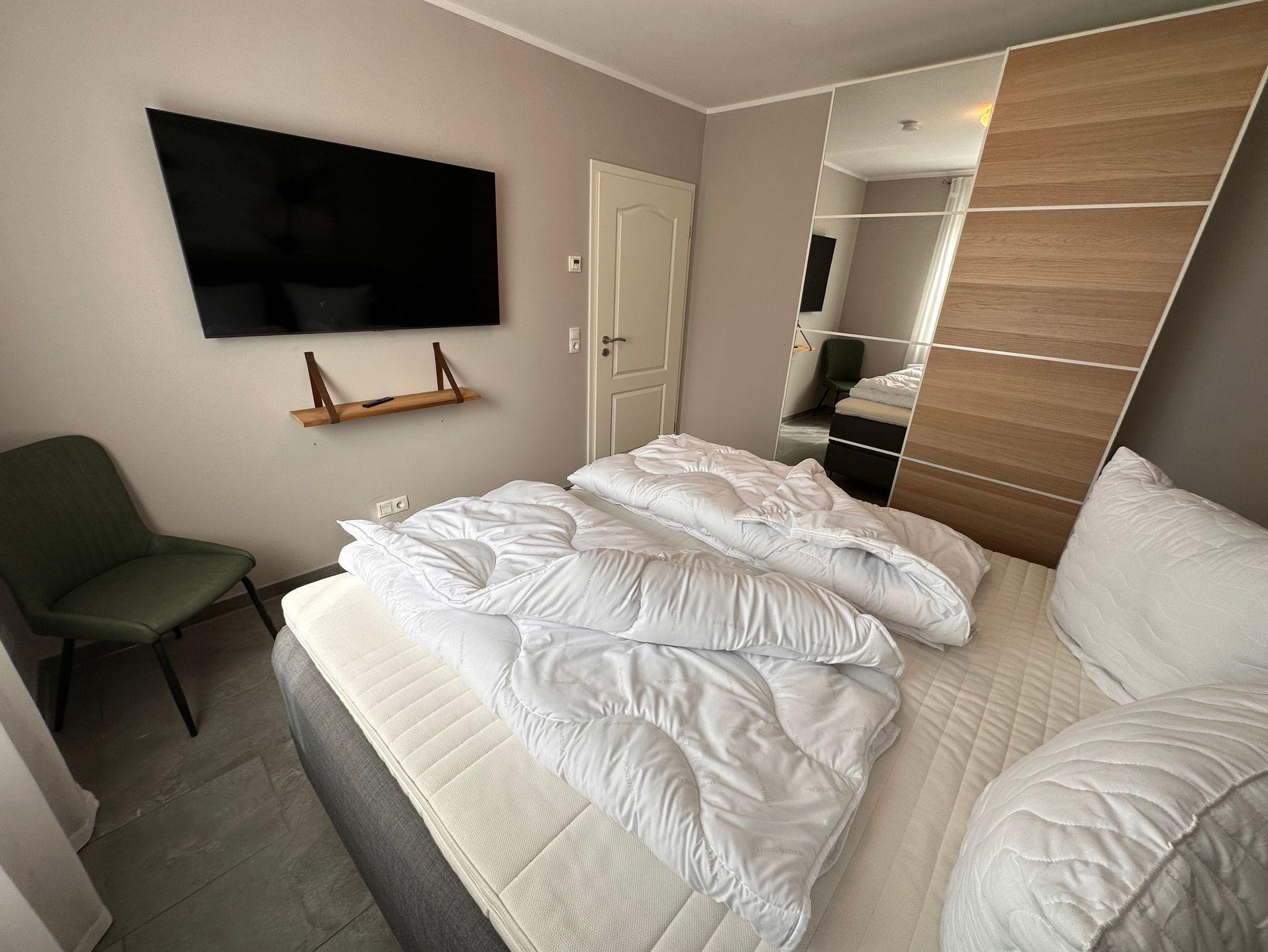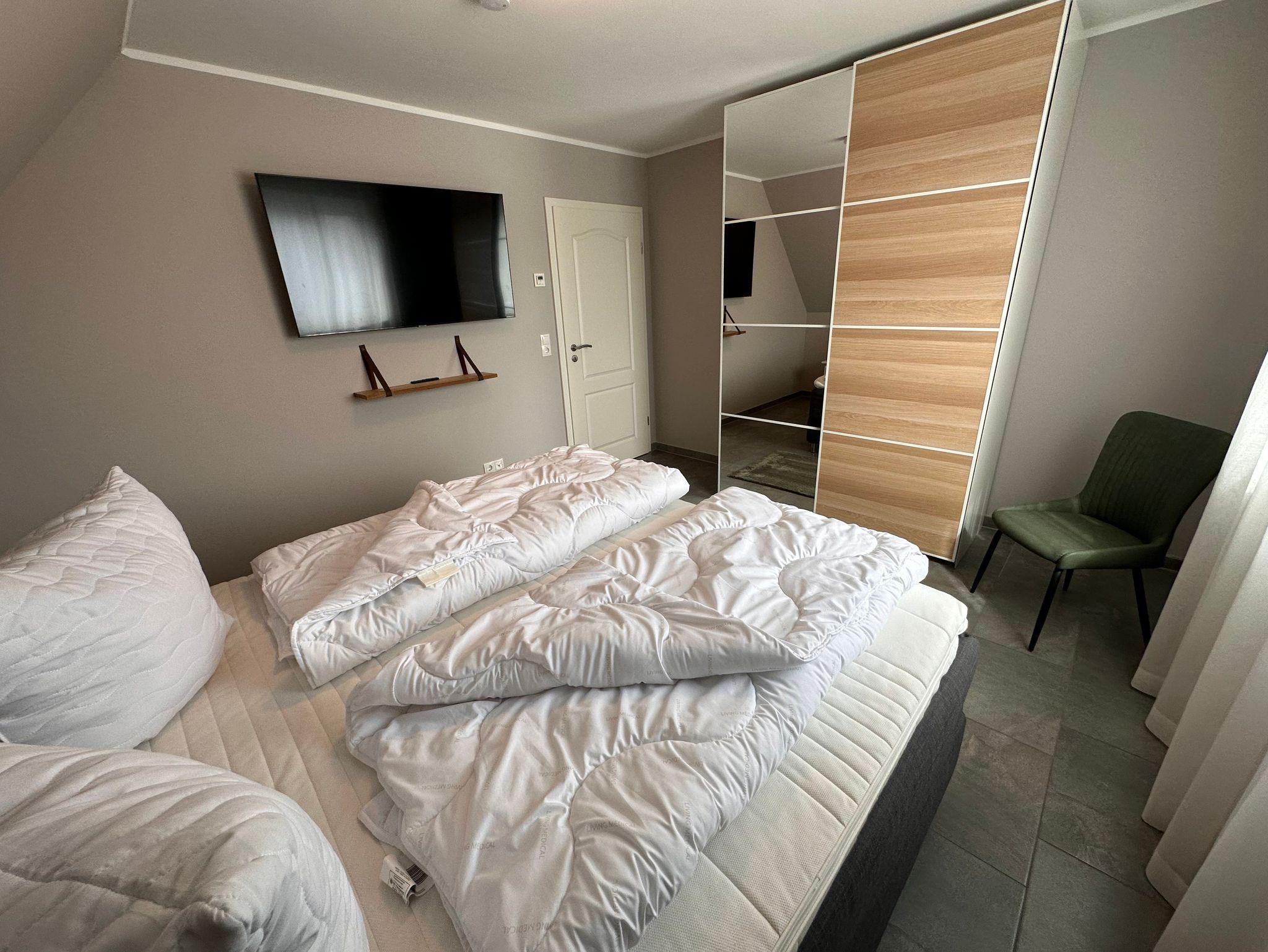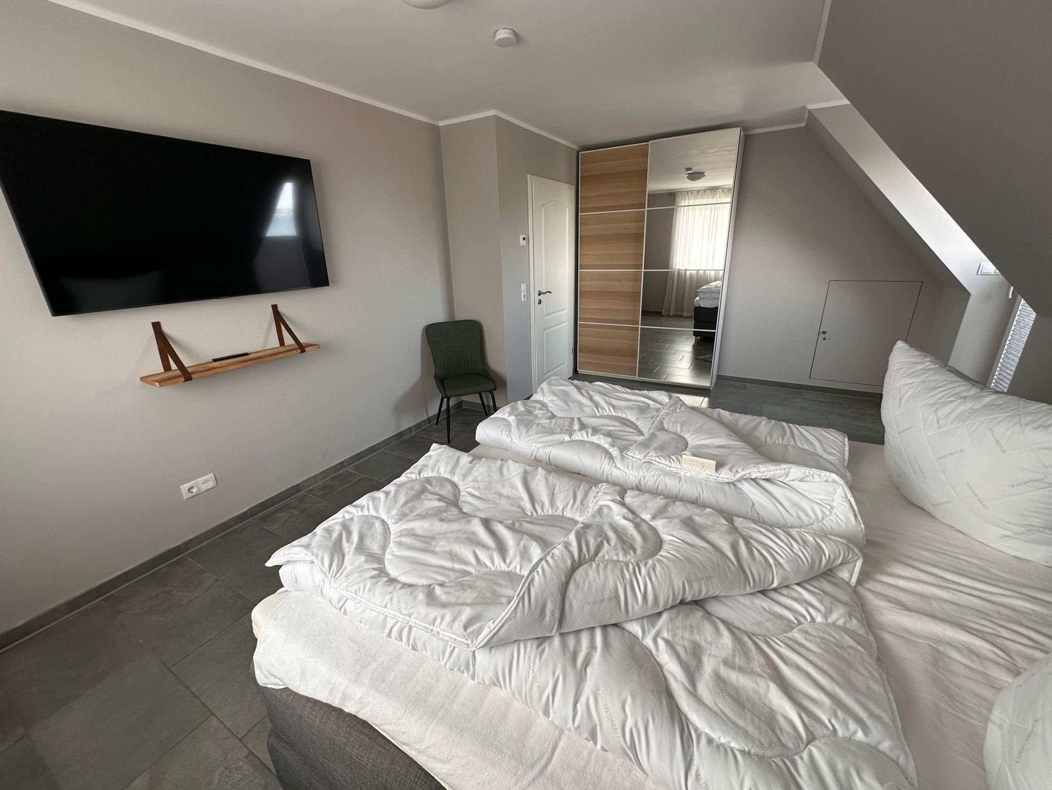 Die 3 Schlafzimmer verfügen ebenfalls alle über Flat-TV und sind jeweils mit 180 x 200 cm großen Boxspringbetten ausgestattet.