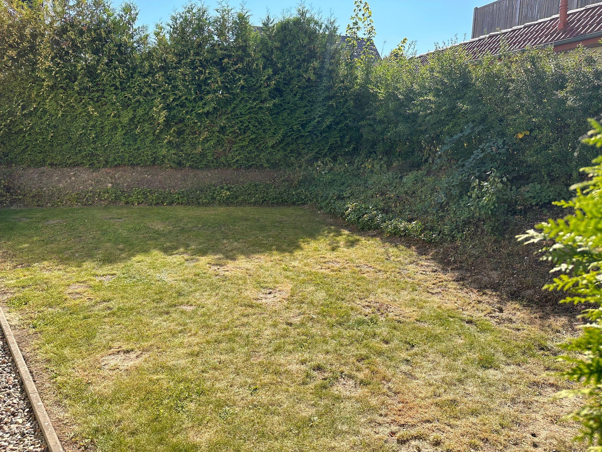 Der Garten ist eingezäunt, sodaß Kleinkinder auch mal unbeaufsichtigt draußen spielen können.
