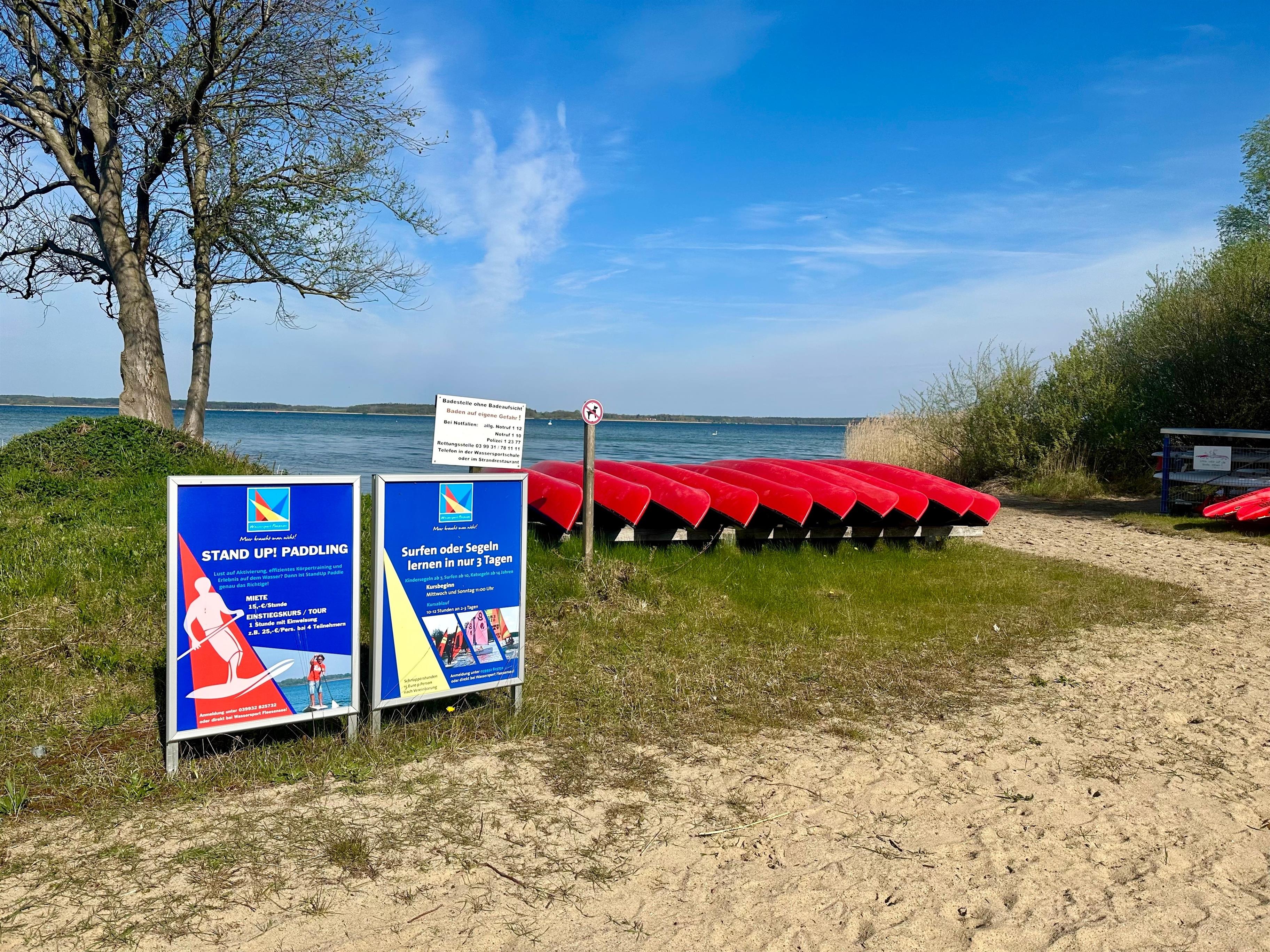 Die Ferienwohnung erreichst du über eine ruhige Privat Straße nur 200 m vom Strand des Fleesensees entfernt .