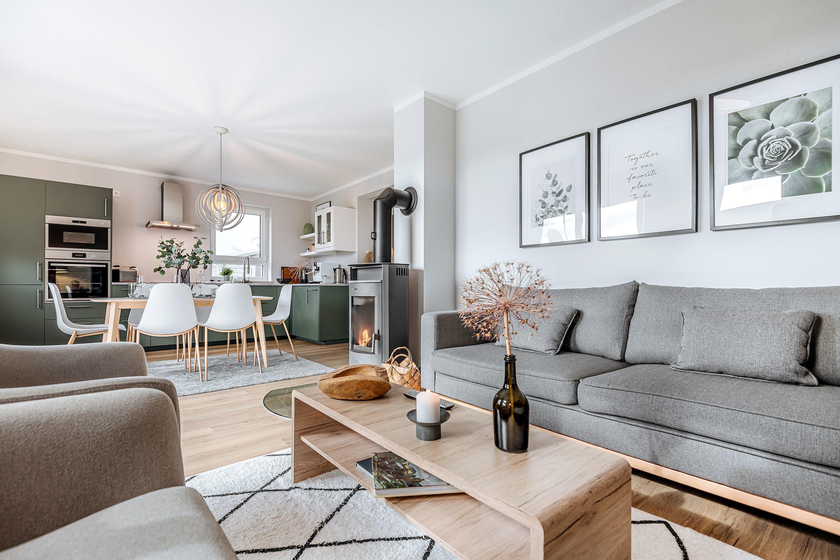 Die "Auszeit-Oase Heidi" verfügt über zwei separate Schlafzimmer, hat aber zusätzlich zwei Schlafmöglichkeiten durch die Schlaf-Couch im Wohnzimmer. So dass bis zu 6 Erwachsene oder zwei Paare mit zwei Kindern hier ihren Urlaub verbringen können.