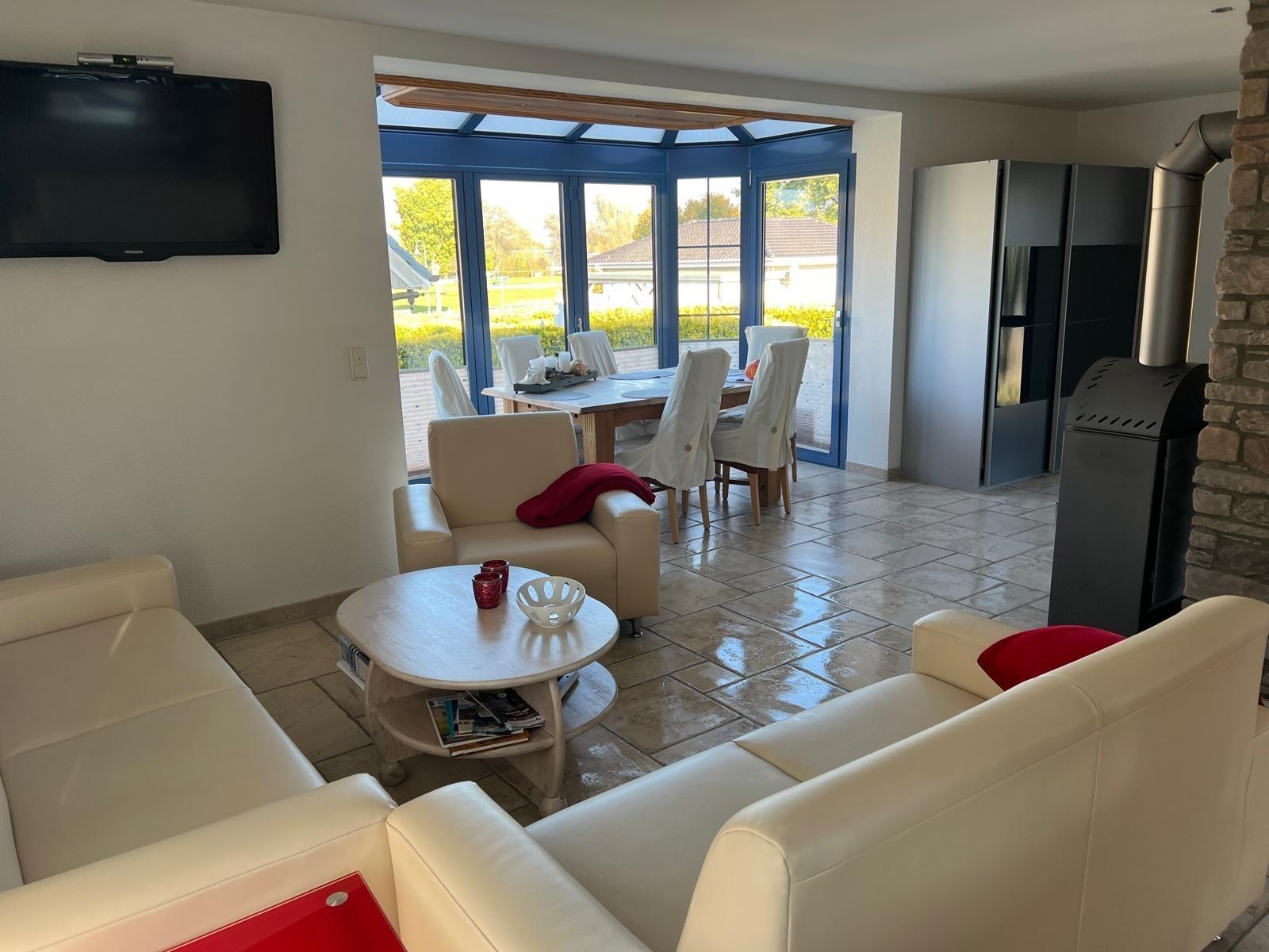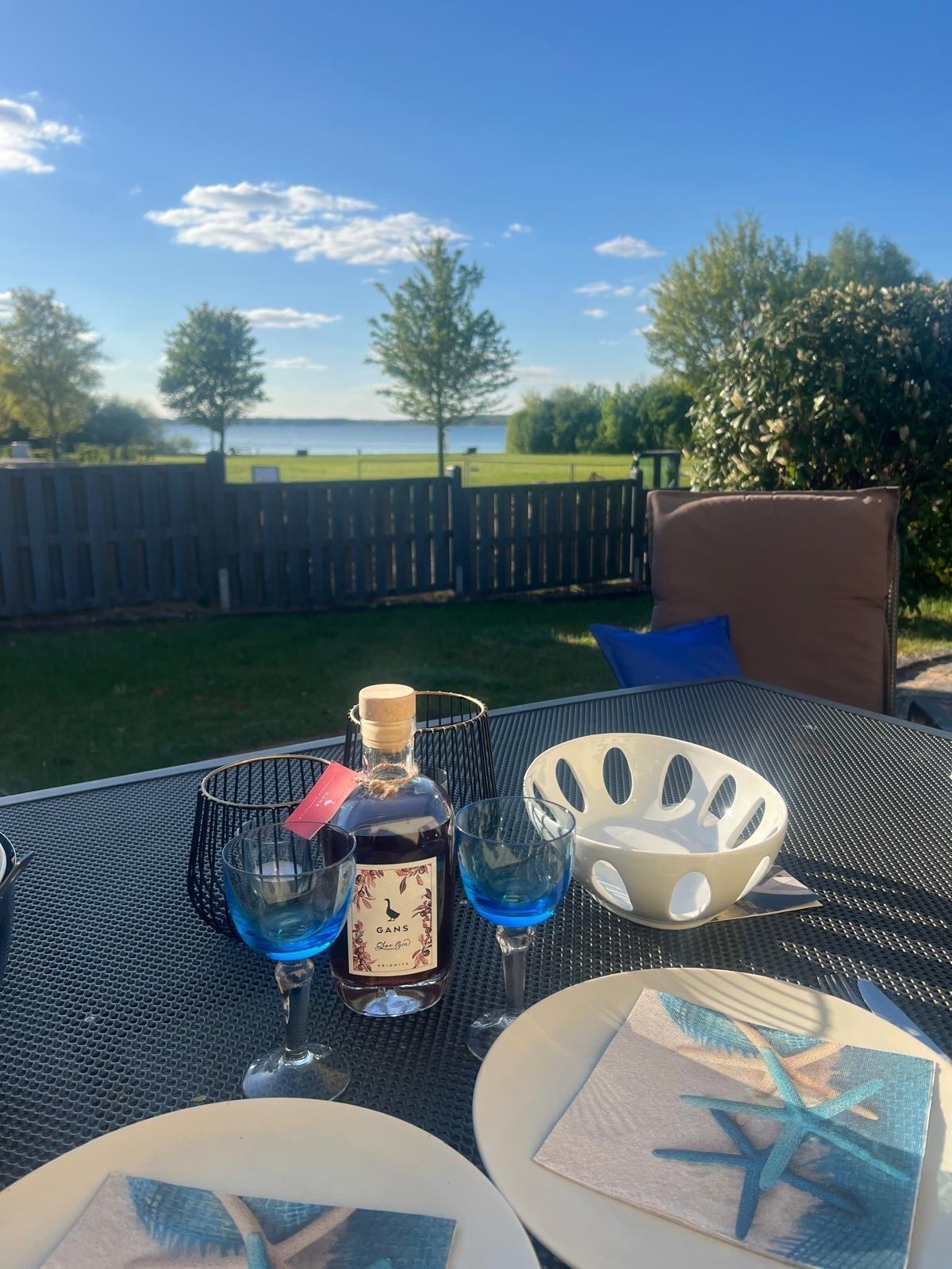 Im Grünen gelegen, genießen Sie morgens auf der Terrasse Ihren Kaffee, während Kinder und Hunde (am nahegelegenen Hundestrand) sich austoben.