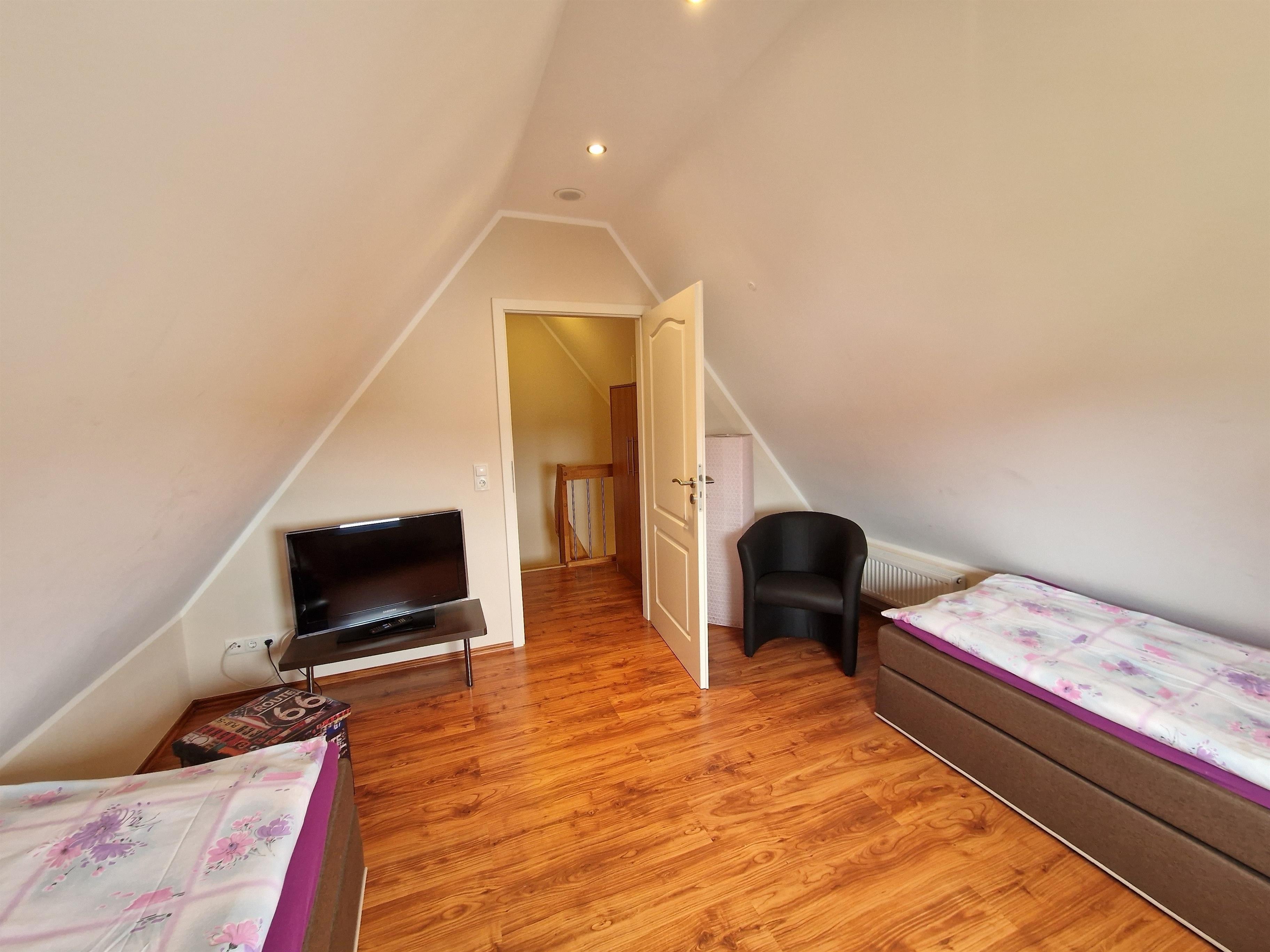 Im Außenbereich befindet sich ein Außen Whirlpool der bis zu 38 Grad beheizbar ist und auch im Winter keinerlei Wünsche für Wellness und Entspannung offen lässt, auf der Terrasse können Sie entspannt Frühstücken oder Ihren Abend am Grill ausklingen lassen. Im EG befindet sich ein großer gemütlicher Wohn-/Essbereich mit Essplatz, Sitzgruppe ,Kaminfeuer (Gas),Radio, Sat-TV eine voll ausgestattete Küche mit Backofen, Kühl und Gefrierschrank, Mikrowelle und vieles mehr. Ein Bad welches mit WC, Sauna und Dusche ausgestattet ist. Im OG gibt es 2 Schlafzimmer, jeweils mit einem Doppelbett sowie Fernseher und ein Bad mit WC und Dusche. Im Dachgeschoss befindet sich dann nochmal ein Schlafzimmer mit 2 Einzelbetten das gerne für die Kinder genutzt wir auch hier gibt es einen Fernseher. Für Ihren Aufenthalt haben wir eine Auswahl an DVDs , sowie Spiele und Bücher ( auch Kinderbücher ) zusammengestellt.