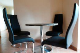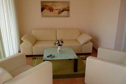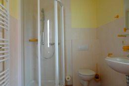 Sie betreten diese liebevoll eingerichtete Ferienhaushälfte über einen Flur der in den Wohn- und Essbereich übergeht. Im ebenerdigen Wohnzimmer befinden sich eine Couch, zwei Sessel, ein kleiner Tisch, Wohnzimmerschränke und ein 80 cm Flachbildfernseher. Auf der anderen Seite vom Flur geht es durch einen offener Durchgang zur Küche. Die Küche ist mit einem Ceranfeldherd und Backofen, Kühlschrank mit Gefrierfach, Mikrowelle, Geschirrspüler, Wasserkocher, Kaffeemaschine, Toaster und einem CD-Radio ausgestattet. Hier steht auch der Esstisch mit Stühlen. Das Bad im Ergeschoß hat eine Dusche und ein WC. Zusätzlich gibt es einen Abstellraum mit Staubsauger und Reinigungsgeräten. Über eine Treppe erreichen Sie das Dachgeschoß. Dort sind ein weiteres Bad mit Dusche und WC sowie 2 Schlafzimmer vorhanden. Ein Schlafzimmer ist mit einem Doppelbett und einem Sitebord möbliert. Von diesem Zimmer können Sie auf den Balkon gehen und die wunderbare Aussicht auf den Fleesensee genießen. Das zweite Schlafzimmer hat zwei Betten, einen Kleiderschrank und einen Rattansessel. Im gesamten Haus gibt es eine Fußbodenheizung. Vom Wohnbereich kommen Sie auf die Terrasse mit Gartenmöbeln und Grill.