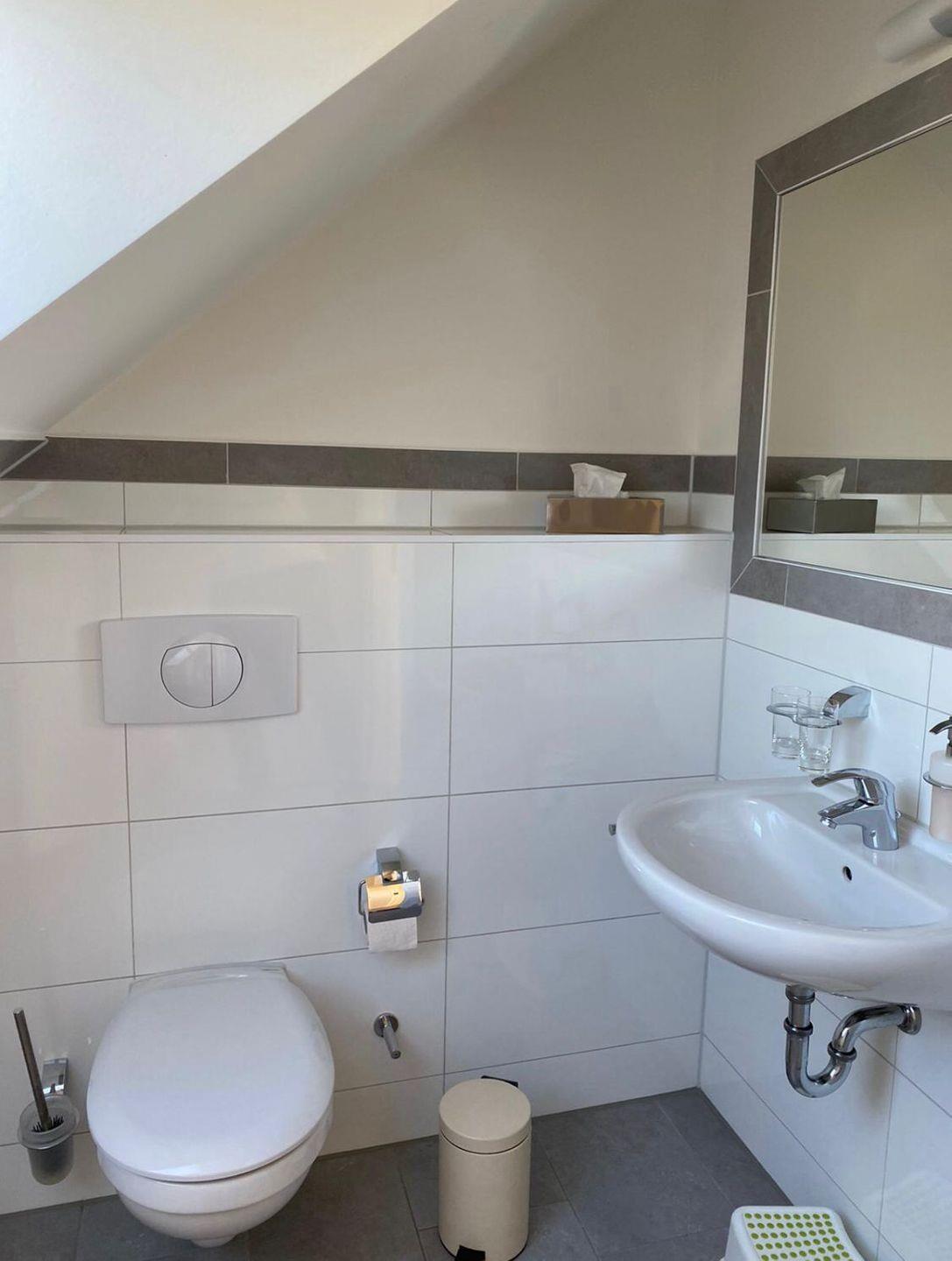 Im Dachgeschoss befindet sich ein zweites WC mit Waschtisch.